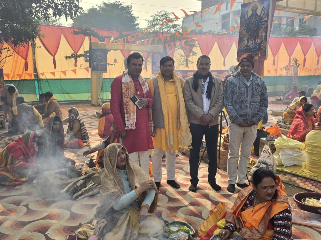 गोरखपुर। जिले के जूही एनक्लेव स्थित दिव्य पीतांबरा फाउंडेशन परिसर में श्री राजराजेश्वरी भगवती माता बगलामुखी के पांच दिवसीय 108 कुण्डीय महायज्ञ का भव्य आयोजन 28 दिसंबर से वैदिक विधि-विधान के साथ किया जा रहा था। नववर्ष के पावन अवसर पर चल रहे इस महायज्ञ की भव्य पूर्णाहुति का आज विशाल भंडारे के साथ समापन हो गया।