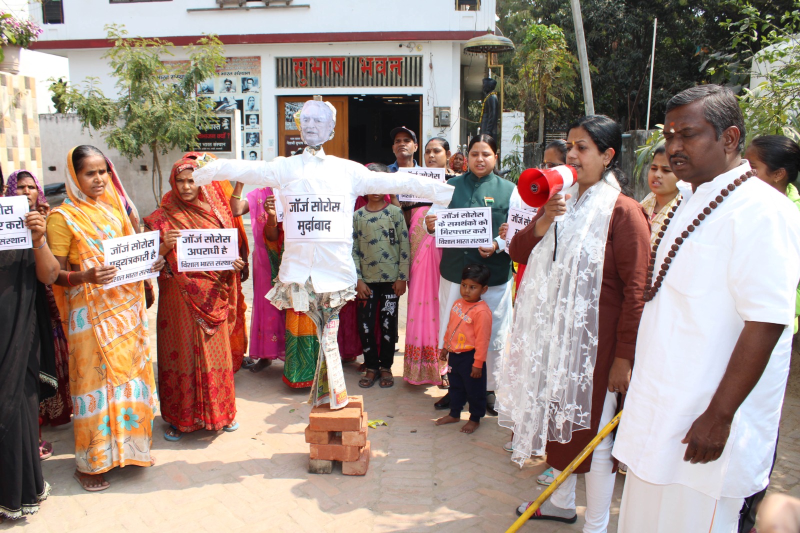 विशाल भारत संस्थान ने षड्यंत्रकारी जार्ज सोरोस का पुतला फूंका