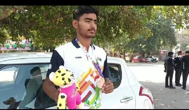 वॉलीबॉल खेल में कांस्य पदक जीतने वाले खिलाड़ी आयुष्मान सिंह लौटे घर, हुआ जोरदार स्वागत