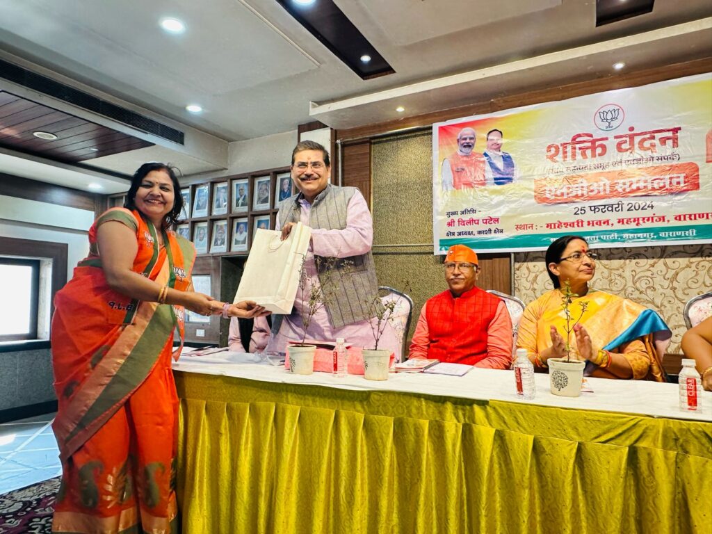 वाराणसी। भारतीय जनता पार्टी महिला मोर्चा द्वारा रविवार को माहेश्वरी भवन, महमूरगंज में “शक्ति वंदन” अभियान के तहत एनजीओ सम्मेलन संपन्न हुआ।भाजपा महानगर अध्यक्ष विद्यासागर राय की अध्यक्षता में संपन्न हुए कार्यक्रम के मुख्य वक्ता अशोक सहगल उपस्थित रहे।समारोह की मुख्य अतिथि भाजपा प्रदेश मंत्री मीना चौबे ने केंद्र सरकार द्वारा 10 सालों में महिलाओं को मिल रही सभी योजनाओं को गिनवाया। उन्होंने कहा कि प्रधानमंत्री नरेंद्र मोदी के नेतृत्व में केंद्र की भाजपा सरकार ने महिलाओं को सशक्त समृद्धिशाली व आत्मनिर्भर बनाया है।