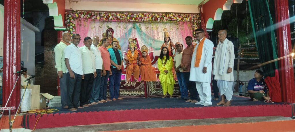 भरत जी द्वारा भगवान श्रीराम के खड़ाऊं को राजसिंहासन पर विराजमान कर पूजा अर्चना करने के उपरांत ब्राह्मण अक्षय वट द्विवेदी “शशि बाबा” ने वैदिक मंत्रोच्चार के बीच भगवान श्रीराम का राज्याभिषेक सम्पन्न कराया। राज्याभिषेक के बाद स्टार कलाकारों द्वारा महादानी राजा हरिश्चन्द्र नाटक का मंचन किया गया, जिसे ग्राउंड में उपस्थित दर्शकों ने खूब सराहा।