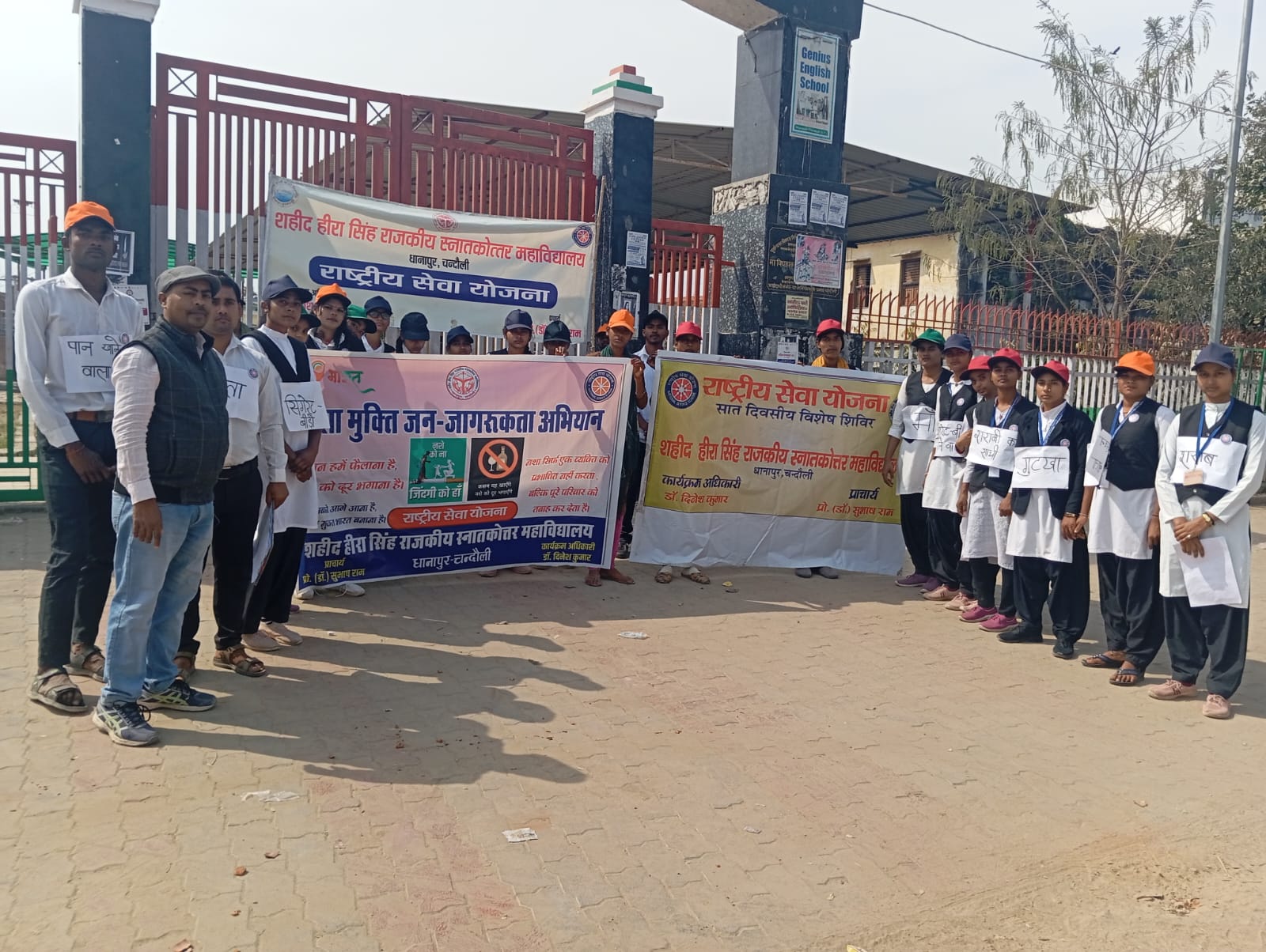 धानापुर (चंदौली)। शहीद हीरा सिंह राजकीय पीजी कॉलेज के छात्र-छात्राओं ने राष्ट्रीय सेवा योजना इकाई के तत्वावधान में नशा मुक्ति जागरूकता शिविर का आयोजन किया। इस अभियान के तहत विद्यार्थियों ने पूरे बाजार में जागरूकता रैली निकाली और नारे लगाते हुए लोगों को नशा छोड़ने के लिए प्रेरित किया। “नशा नहीं, जिंदगी चुनें”, “आओ मिलकर कसम खाएं, नशा मुक्त देश बनाएं” जैसे नारों से बाजार गूंज उठा।