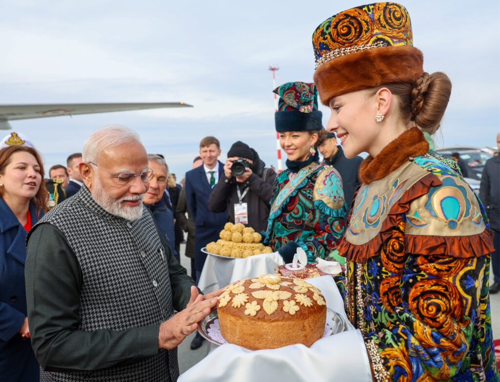 इससे पहले कजान एयरपोर्ट पर प्रधानमंत्री मोदी का गर्मजोशी से स्वागत किया गया, जहां प्रवासी भारतीयों और बच्चों ने उन्हें लड्डू और केक भेंट किया। होटल पहुंचने पर उन्होंने भारतीय पोशाक पहने रूसी कलाकारों का नृत्य भी देखा।