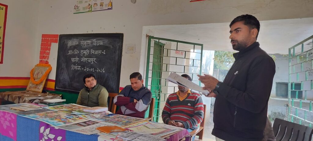 घघसरा (गोरखपुर)। पाली ब्लॉक के अंतर्गत मंगलवार को प्राथमिक विद्यालय संवाददाता अनिरुद्ध गुप्ता सं डुमरी निवास के संकुल पर शिक्षकों की बैठक आयोजित की गई। मुख्य अतिथि खंड शिक्षा अधिकारी कुंवर विक्रम पांडे ने बैठक को संबोधित करते हुए कहा कि इस माह से प्रारंभ हो रहे निपुण असेसमेंट में अपने और अपने ब्लॉक सभी विद्यालय को शत प्रतिशत निपुण बनाना है।