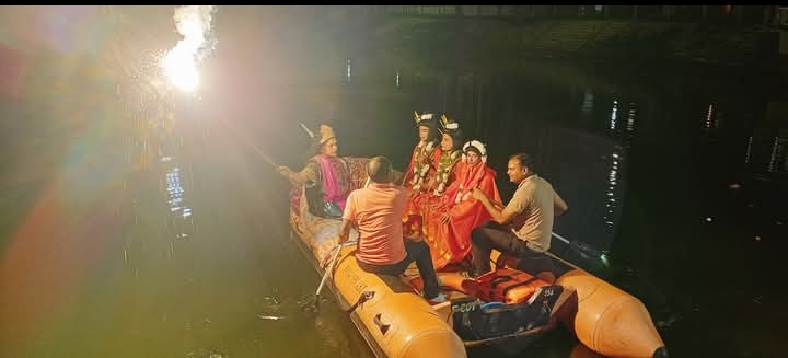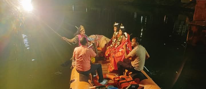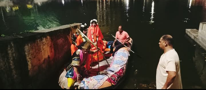 रामलीला मैदान से सटे रामभट्ट तालाब में इस प्रसंग का मंचन हुआ, जहाँ भक्तराज केवट ने प्रभु श्रीराम से चरण पखारने के बाद अपनी नाव में बैठाकर नदी पार कराई। मंचन में दर्शाया गया कि केवट ने प्रभु से विनम्रतापूर्वक कहा कि आपके चरण कमलों की धूल से शिला नारी बन गई थी, इसलिए पहले मैं आपके चरण पखारूँगा, तभी आपको अपनी नाव में बैठाऊँगा। इसके बाद उन्होंने कठौती में गंगा जल लाकर प्रभु के चरण धोए और परिवार सहित उस चरणामृत को ग्रहण किया।