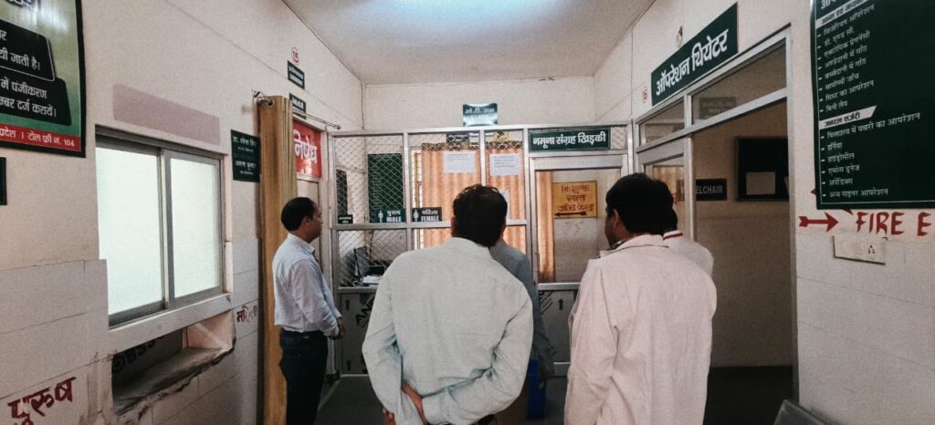 राज्य स्वास्थ्य एजेंसी के निर्देश पर यह निरीक्षण डॉ. आदित्य पाण्डेय (चिकित्साधिकारी, SACIS) और अमरेन्द्र सिंह (महाप्रबंधक, पॉलिसी एवं पब्लिक हेल्थ, SACIS) ने किया। इस दौरान अधीक्षक डॉ. संतोष कुमार यादव, डॉ. मनोज दुबे, डॉ. अरुन यादव, डॉ. प्रतिभा सिंह, मुख्य चिकित्सा अधिकारी कार्यालय से नवेंद्र सिंह (DISM) और लेखाकार नितेश चौबे भी मौजूद रहे।