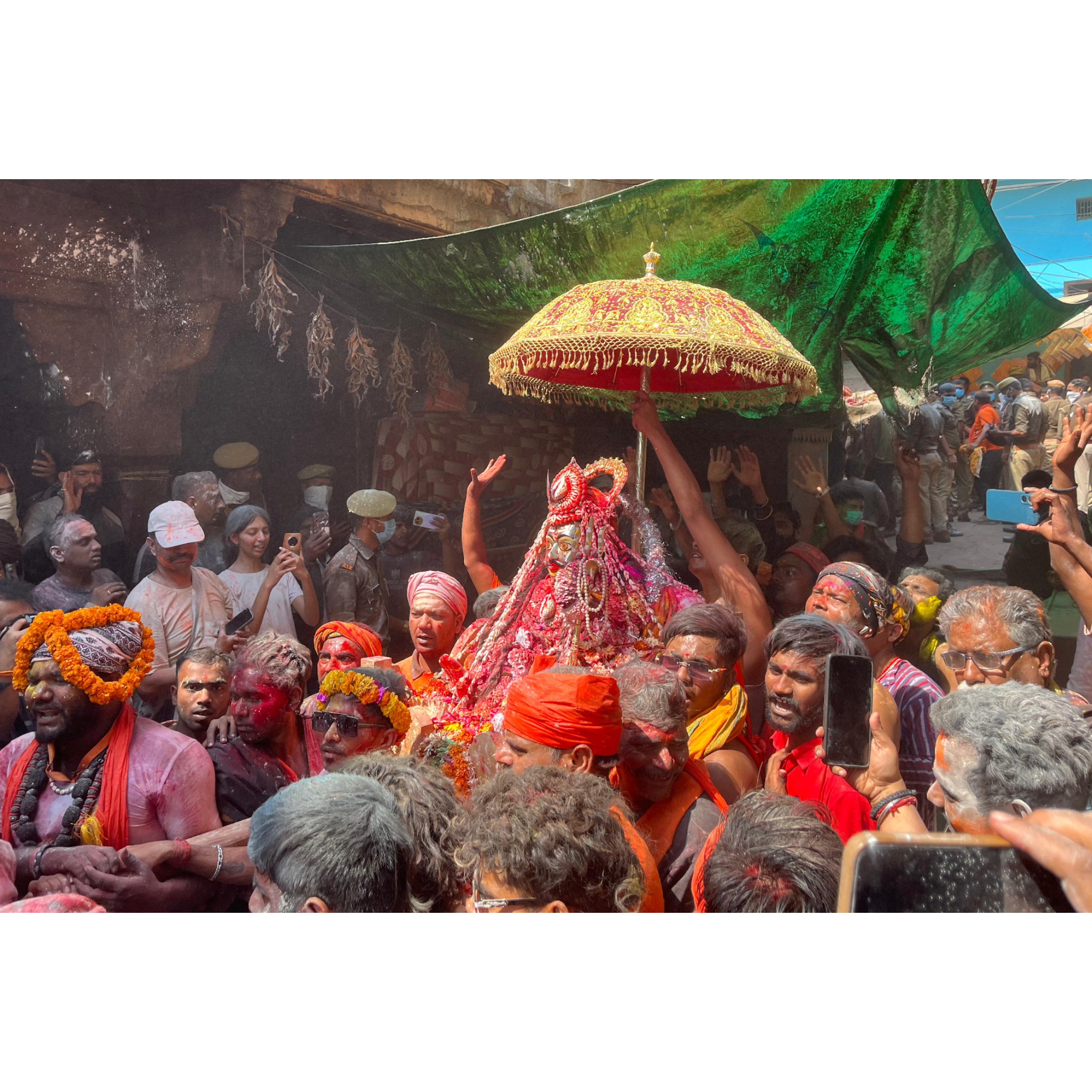 वाराणसी (जयदेश)। मसान की होली को लेकर रोक और उठे विवादों के बीच शनिवार को मणिकर्णिका घाट स्थित बाबा मसान नाथ मंदिर में प्रातःकाल से ही पूजा-अर्चना प्रारंभ हो गई। नागा साधुओं और अन्य संतों ने मंदिर में एकत्र होकर बाबा को चिताभस्म अर्पित की और इसी के साथ मसान की होली की औपचारिक शुरुआत हुई। धीरे-धीरे श्रद्धालुओं की भीड़ बढ़ती गई और दोपहर तक बड़ी संख्या में लोग मणिकर्णिका घाट पहुंच गए।