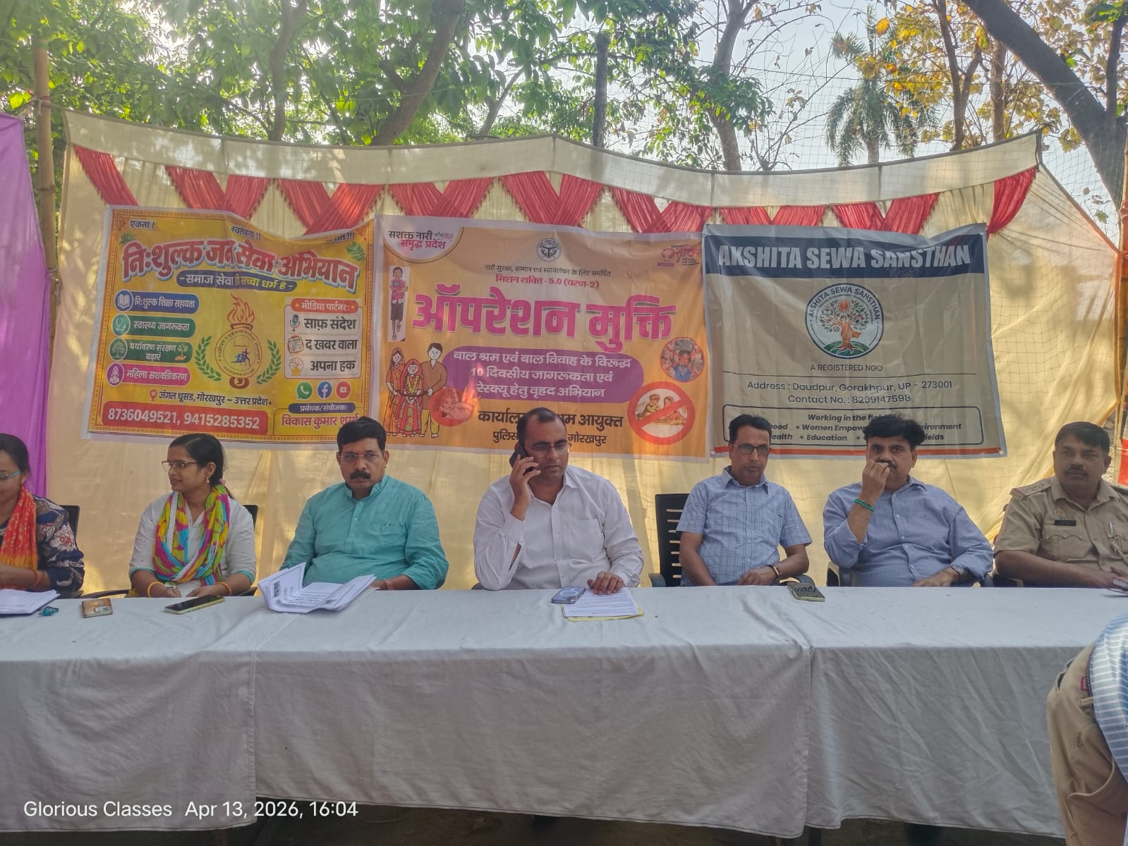गोरखपुर। प्रदेश में महिलाओं एवं बालिकाओं की सुरक्षा, सम्मान एवं स्वावलंबन हेतु “मिशन शक्ति फेज–5.0” के द्वितीय चरण के अंतर्गत दिनांक 14-04-2026 से दिनांक 23-04-2026 तक संचालित ऑपरेशन मुक्ति कार्यक्रम संचालित किया जा रहा है, जिसके क्रम में कार्यालय उप श्रम आयुक्त, 2, पुलिस लाइन गोरखपुर के प्रांगण में ऑपरेशन मुक्ति कार्यक्रम के अंतर्गत बालश्रम एवं बाल विवाह के विरुद्ध एक कार्यशाला आयोजित किया गया।