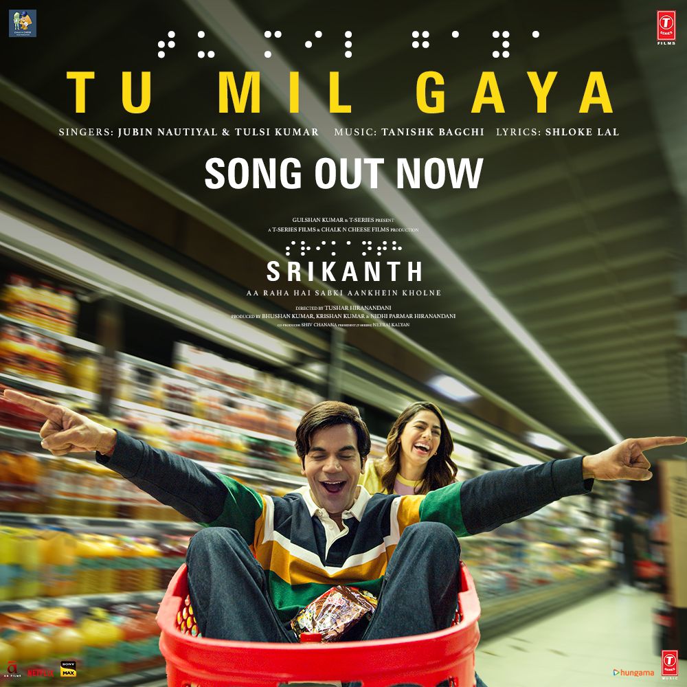 राजकुमार राव अभिनीत फिल्म “श्रीकांत – आ रहा है सबकी आंखें खोलने” का ट्रेलर लोगों के दिल को छु गया है। और अब फिल्म का नया “तू मिल गया” की रिलीज के साथ एक मेलोडियस शुरुवात कर दी है । यह गाना निश्चितरूप से लोगों के दिलों को छु जायेगा। प्रतिभाशाली तनिष्क बागची द्वारा रचित, यह सोलफुल ट्रैक नायकों के बीच प्यार और स्नेह के सार को दर्शाता है, जिसे राजकुमार राव और अलाया एफ ने चित्रित किया है। जुबिन नौटियाल और तुलसी कुमार द्वारा स्वरबद्ध किये गए इस गाने को श्लोक लाल द्वारा लिखा है।