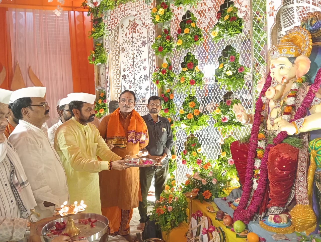 उत्सव समिति के अध्यक्ष आनन्द राव सूर्यवंशी और अन्य पदाधिकारियों ने श्री गणेश जी का पूजन किया। उत्तर प्रदेश सरकार के आयुष मंत्री डॉ. दयाशंकर मिश्र दयालु मुख्य अतिथि के रूप में उपस्थित रहे और उन्होंने महाआरती कर उत्सव का विधिवत उद्घाटन किया। वरिष्ठ संरक्षक माणिक राव पाटिल, संरक्षक संतोष पाटिल, अध्यक्ष आनन्द राव सूर्यवंशी, महामंत्री अन्ना मोरे और कोषाध्यक्ष हनुमान शिंदे ने मुख्य अतिथि को माल्यार्पण, अंगवस्त्र और स्मृति चिन्ह भेंट किया।