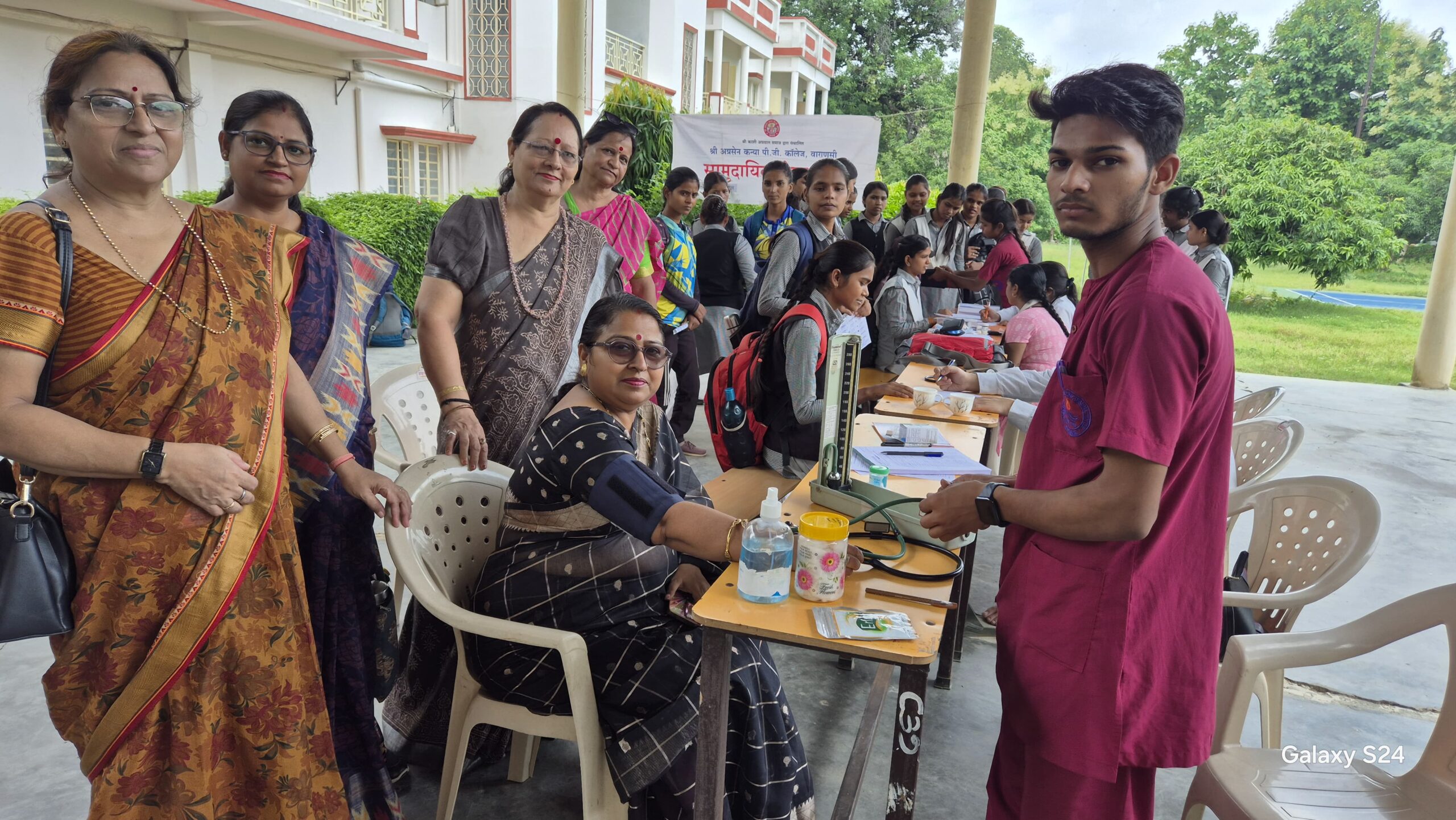 वाराणसी। परमानंदपुर परिसर में आज अग्रसेन कन्या पी.जी. कॉलेज में सामुदायिक सेवा केंद्र एवं अमृताशा हॉस्पिटल एंड ट्रामा सेंटर के संयुक्त तत्वावधान में नि:शुल्क स्वास्थ्य एवं रक्तदान शिविर का आयोजन किया गया। इस अवसर पर प्रबंधक डॉ. मधु अग्रवाल एवं सहायक मंत्री डॉ. रूबी शाह ने छात्राओं को रक्तदान के लिए प्रेरित किया और इसे मानवता की सेवा तथा स्वास्थ्य के लिए लाभकारी बताया।
