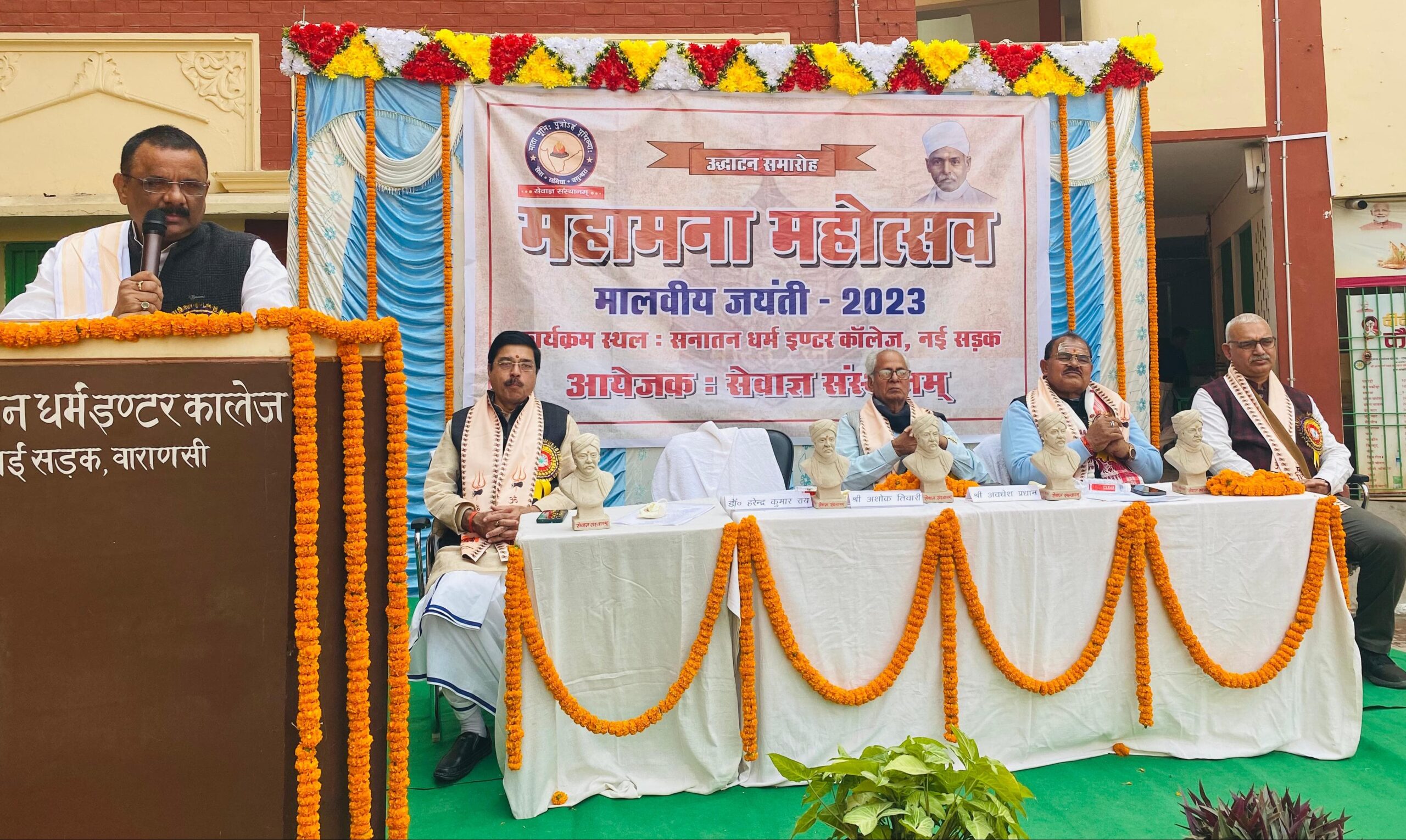 वाराणसी। महामना मदनमोहन मालवीय ने श्रेष्ठ भारत का स्वप्न देखा था और उसे साकार करने के लिए आजीवन यत्न किया। यह कहना है मेयर अशोक कुमार तिवारी का वह सोमवार को महामना की 163 वीं जयंती के मौके पर सेवाज्ञ संस्थानम् की ओर से आयोजित पंद्रह दिवसीय महामना महोत्सव के उद्घाटन समारोह को बतौर मुख्य अतिथि संबोधित कर रहे थे। नई सड़क स्थित सनातन धर्म इंटर कॉलेज में आयोजित समारोह में मेयर ने कहा कि महामना ने समाज की दशा और दिशा बदलने के लिए मूल्यपरक शिक्षा की सुलभता को जरूरी समझा। काशी हिन्दू विश्वविद्यालय की स्थापना कर देश को ऐसे स्नातकों की मालिका दी जो विश्व में भारतीय संस्कृति के दूत बने। मुख्य वक्ता बीएचयू के प्रो.अवधेश प्रधान ने कहा कि मालवीय जी ने राष्ट्रीय आंदोलन को नई दिशा दी। महामना के विचार अनुकरणीय है। अध्यक्षता कर रहे उत्तर प्रदेश माध्यमिक शिक्षा चयन बोर्ड के पूर्व सदस्य डॉ हरेंद्र कुमार राय जी ने कहा कि महामना का उद्देश्य देश के नौजवानों को भारतीय संस्कृति में निहित मूल्यों से परिचित कराकर सुनहरे भारत का निर्माण था। इस मौके पर प्रधानाचार्य डॉ जयप्रकाश पांडेय, डॉ प्रतिभा यादव, चारुचंद्रराम त्रिपाठी ने विचार व्यक्त किए। प्रारंभ में अतिथियों ने महामना मदनमोहन मालवीय और पूर्व प्रधानमंत्री अटल बिहारी वाजपेई के चित्र पर पुष्पांजलि अर्पित कर नमन किया। संचालन डॉ लोकेंद्र चंद्र ने किया। महानगर संयोजक भावेश उपाध्याय ने बताया की महामना महोत्सव के अंतर्गत 6 जनवरी तक जिले के 10 इंटर कॉलेजो में 10 प्रतियोगिताएं होंगी। दूसरे दिन मंगलवार को महमूरगंज स्थित निवेदिता शिक्षा सदन में 21 वीं सदी का भारत और महामना की दृष्टि विषयक संभाषण प्रतियोगिता होंगी। इसमें 50 इंटर कॉलेज के विद्यार्थी हिस्सा लेंगे।