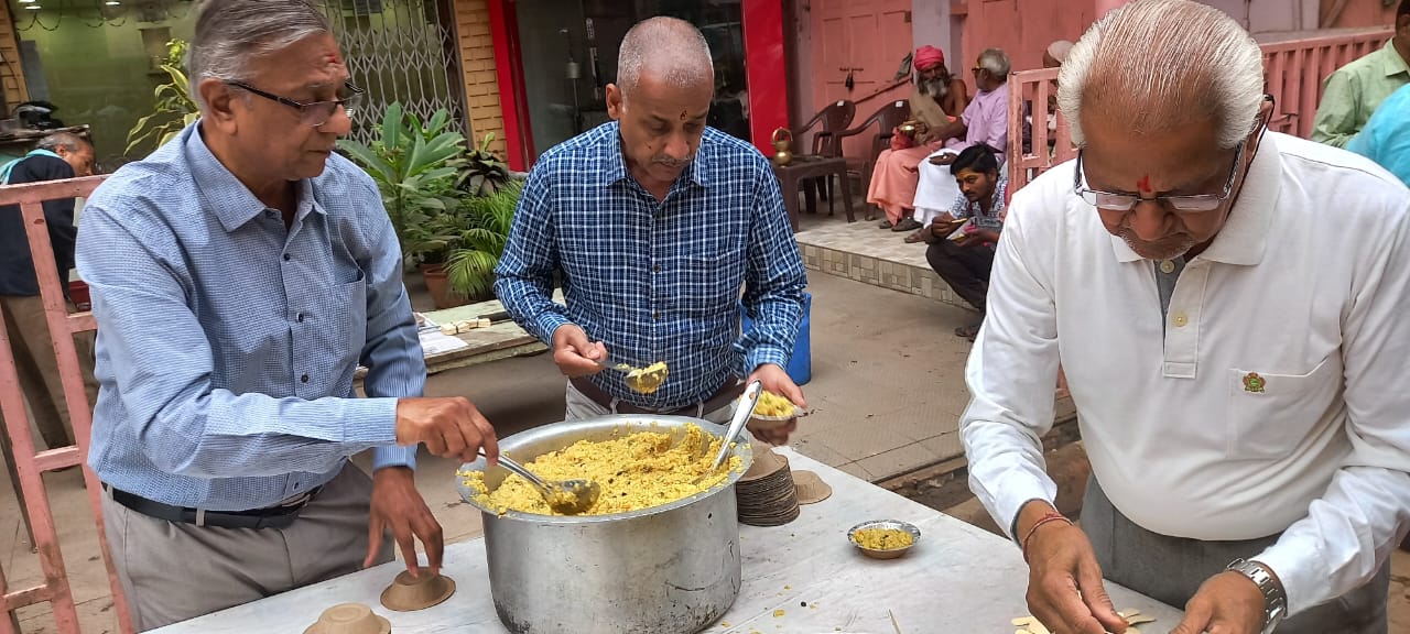 वाराणसी। अपनी सामाजिक संस्था संकल्प द्वारा संचालित संकल्प अन्य क्षेत्र के तत्वाधान में शनिवार को चौक स्थित कन्हैया लाल गुलाल चंद सर्राफ के सामने श्रद्धालुओं में प्रसाद (खिचड़ी) का वितरण किया गया। जिसका लाभ श्री काशी विश्वनाथ एवं मां अन्नपूर्णा के दर्शन को आने वाले श्रद्धालुओं, क्षेत्र में काम करने वाले श्रमिकों एवं व्यापारियों ने प्राप्त किया।