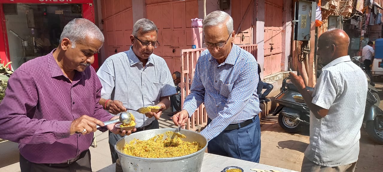 वाराणसी: अग्रणी सामाजिक संस्था संकल्प द्वारा संचालित ‘‘संकल्प अन्न क्षेत्र’’ के तत्वावधान में प्रत्येक शनिवार को अनवरत चल रहे प्रसाद (खिचड़ी) वितरण के क्रम में शनिवार को चौक स्थित प्रतिष्ठान कन्हैयालाल गुलालचन्द सर्राफ के सामने प्रसाद (खिचड़ी) वितरण किया गया। जिसका लाभ बाबा श्री काशी विश्वनाथ के दर्शनार्थ आये श्रद्धालुओ के साथ क्षेत्रीय जनमानस, बाहर से आने वाले व्यापारियों को भी प्राप्त हुआ। वहीं क्षेत्र में कार्य करने वाले श्रमिक एक प्रसाद के रूप में एक पहर का भोजन प्राप्त करते हैं और प्रसाद ग्रहण कर प्रसाद वितरण से जुड़े संकल्प संस्था सदस्यों को साधुवाद देते है।