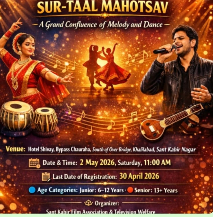 संतकबीर नगर। क्षेत्रीय प्रतिभाओं को मंच प्रदान करने के उद्देश्य से “संत कबीर सुर-ताल महोत्सव” का आयोजन आगामी 2 मई 2026, शनिवार को प्रातः 11:00 बजे होटल शिवाय, बाईपास चौराहा, ओवरब्रिज के दक्षिण, खलीलाबाद में किया जाएगा। कार्यक्रम का आयोजन संत कबीर फिल्म एवं टेलीविजन वेलफेयर के तत्वावधान में किया जा रहा है, जिसमें सह आयोजक के रूप में सहारा चेरिटेबल ट्रस्ट तथा सुनहरा भविष्य वेलफेयर सोसाइटी की सहभागिता रहेगी।