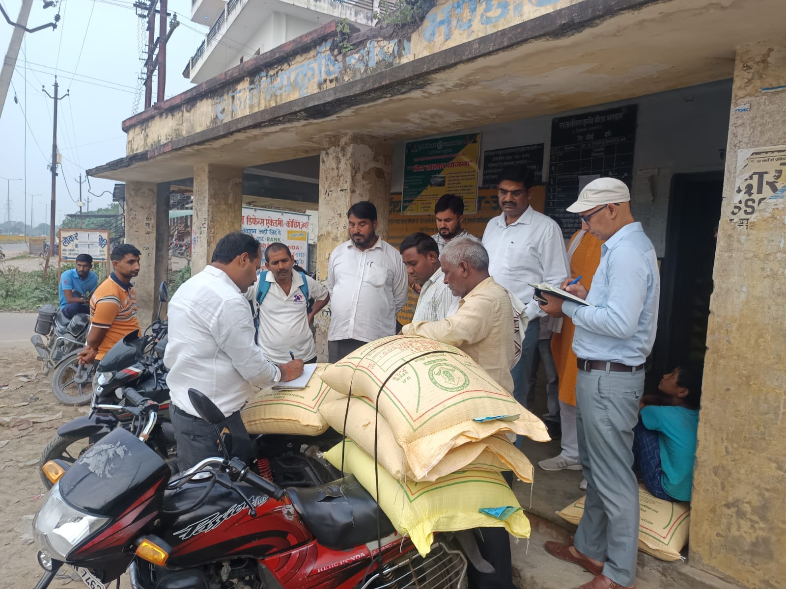 निरीक्षण के दौरान जानकारी दी गई कि किसानों इंद्रजीत सिंह (ग्राम रामचंदीपुर), उमानाथ सिंह और मोहन यादव (ग्राम मुस्तफाबाद) ने गेहूं का बीज प्राप्त किया है। स्टोर इंचार्ज ने बताया कि गोदाम पर वर्तमान में विभिन्न फसलों का बीज उपलब्ध है, जिसमें सरसों (PM-32) – 2.50 क्विंटल, चना (RVG 202) – 16.60 क्विंटल, मटर (IPFD) – 13 क्विंटल, मसूर (कोटा-3) – 24 किलोग्राम, गेहूं (DBW-187 ‘करण वंदना’) – 182.40 क्विंटल तथा गेहूं (DBW-303) – 200 क्विंटल शामिल हैं। इनका वितरण किसानों को नियमानुसार किया जा रहा है।
