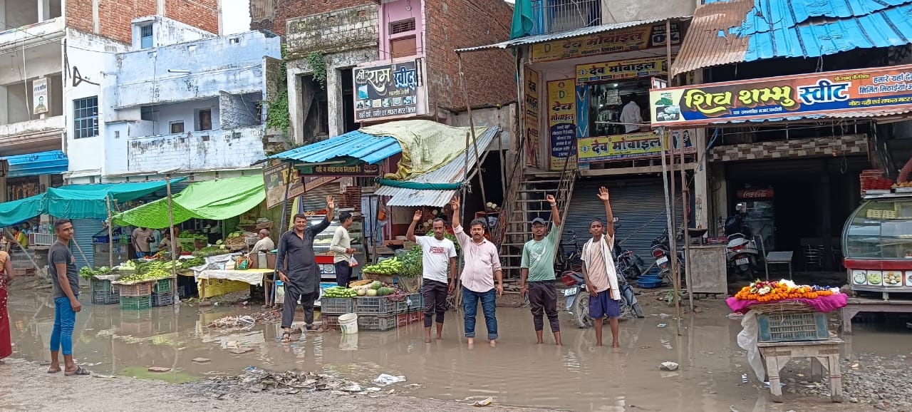 रविवार को सुबह हुई बरसात से दुकानों के सामने जलभराव की समस्या उत्पन्न होने से कारोबार पूरी तरह प्रभावित रहा। सब्जी, मिठाई, इलेक्ट्रॉनिक, बर्तन, चाय-पान और मोबाइल दुकानदारों ने आरोप लगाया कि पुलिया निर्माण अधूरा होने के कारण सड़क के किनारे जलभराव की स्थिति उत्पन्न हो गई है। नाला निर्माण में तेजी से कार्य नहीं होने के कारण दुकानों के सामने जलभराव हो रहा है, जिससे मच्छरों का प्रकोप बढ़ गया है। लोग संक्रामक रोगों से परेशान हैं। शिकायत के बावजूद कार्यदायी संस्था के अधिकारी अनजान बने हुए हैं।