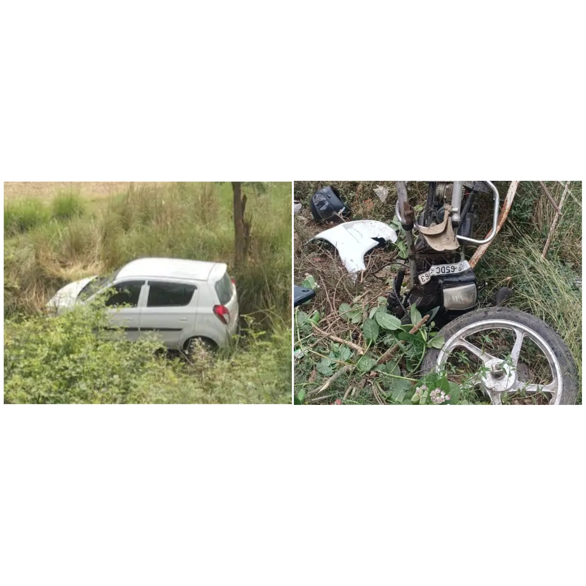 सड़क हादसे में बाइक सवार युवक घायल, गड्ढे में गिरी कार
