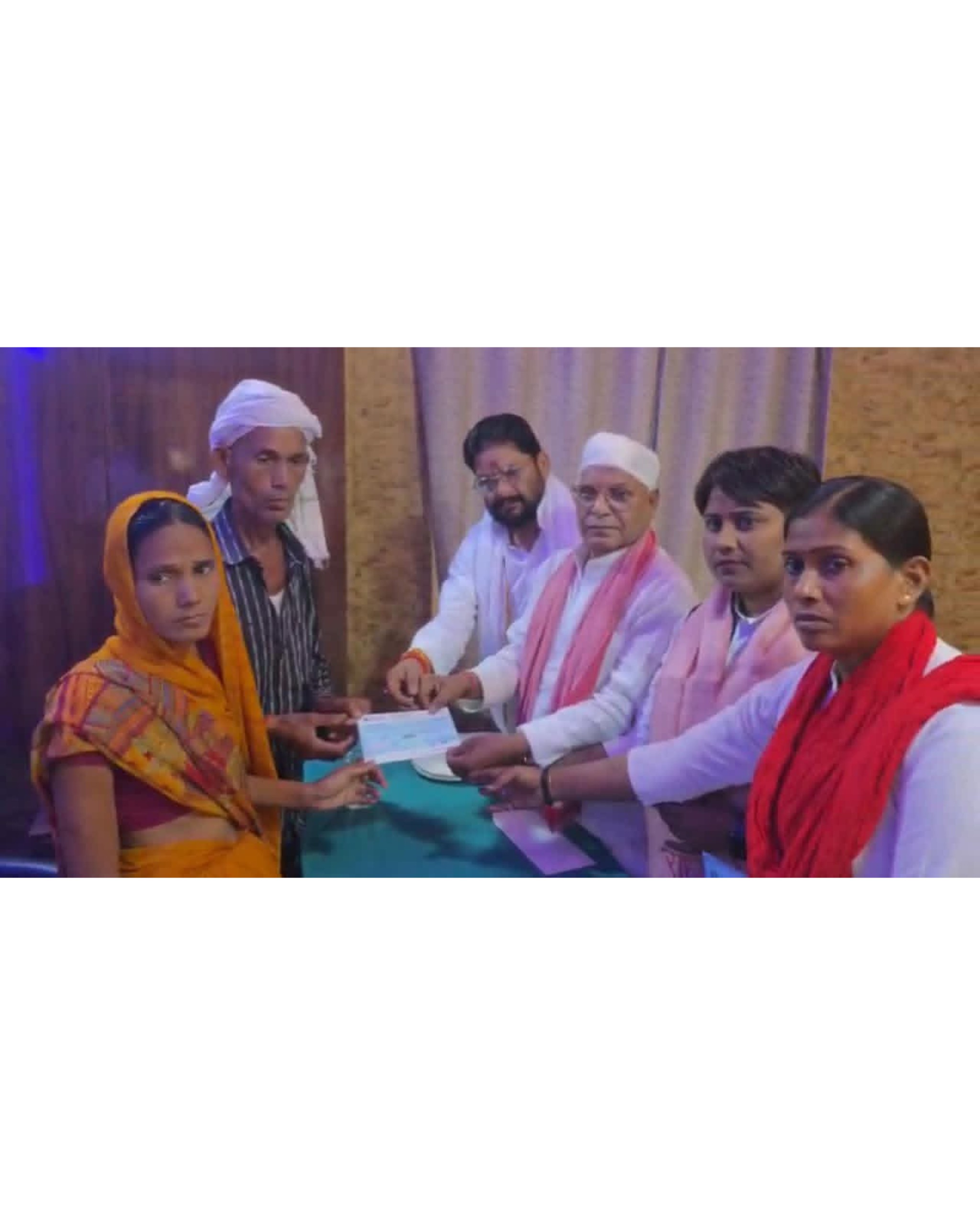 सपा डेलिगेशन ने पीड़ित परिवार को सौंपी पांच लाख की सहायता राशि