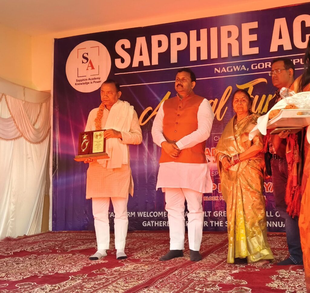 गोरखपुर। जनपद के अंतर्गत नगवा जैतपुर  में स्थित सफायर अकैडमी में वार्षिक उत्सव बड़े ही हर्षोल्लास, उत्साह और गरिमामय वातावरण में संपन्न हुआ। विद्यालय प्रांगण को आकर्षक एवं रंग-बिरंगी सजावट से सजाया गया था। कार्यक्रम में विद्यार्थियों, अभिभावकों तथा क्षेत्र के गणमान्य व्यक्तियों की उपस्थिति ने आयोजन की शोभा कई गुना बढ़ा दी।