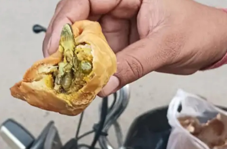 समोसे में निकली मेंढक की टांग, हिरासत में मैनेजर