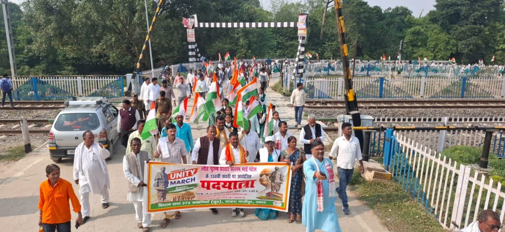 पदयात्रा में जखनिया विधानसभा क्षेत्र के भाजपा कार्यकर्ता, आमजन तथा विद्यालय के छात्र-छात्राओं ने हाथों में तिरंगा लिए “भारत माता की जय”, “वंदे मातरम” और “सरदार पटेल अमर रहें” के नारे लगाते हुए भाग लिया।