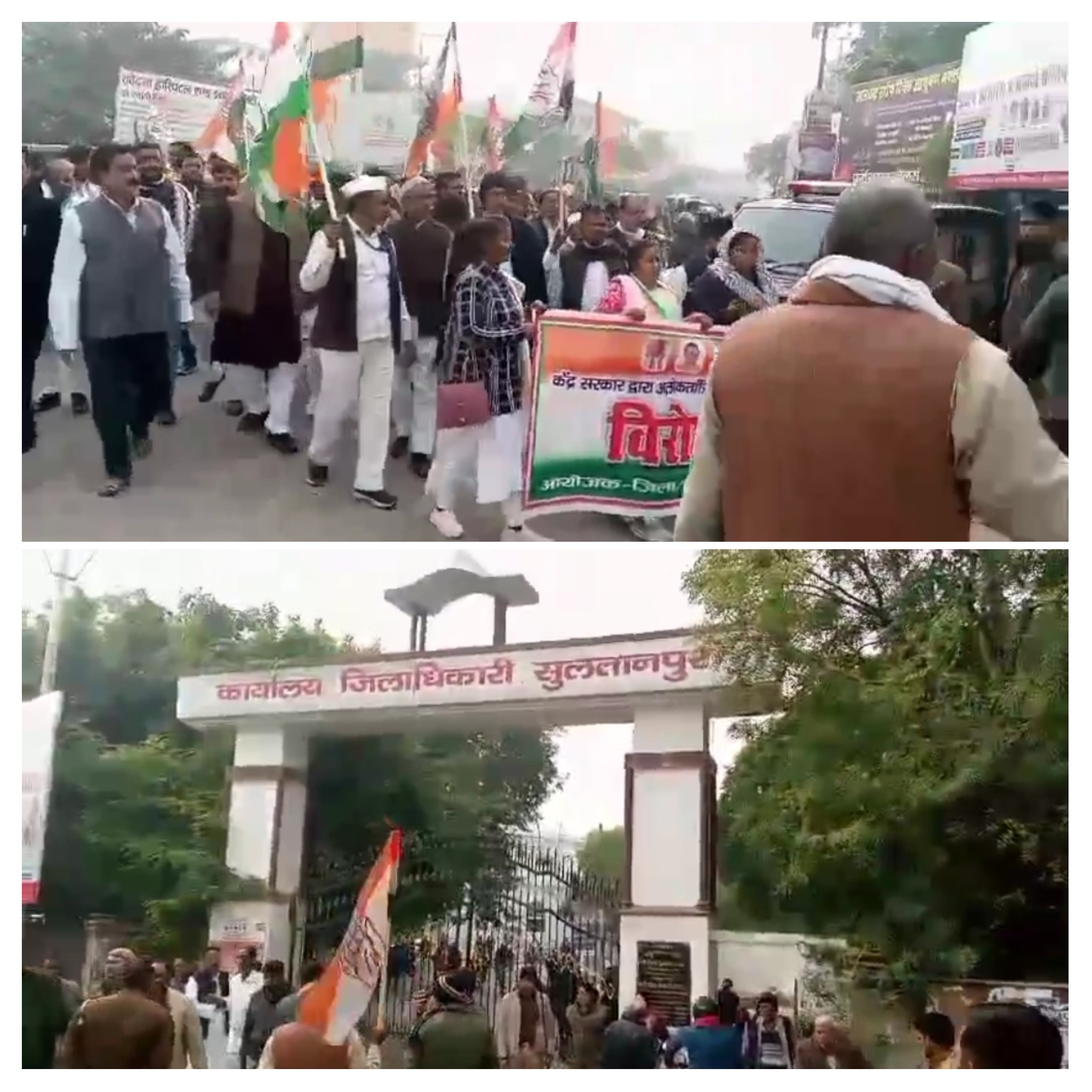 खबर सुल्तानपुर से हैं जहां सांसदों के निलंबन को लेकर कांग्रेसियों ने विरोध प्रदर्शन कर महामहिम राष्ट्रपति के लिए संबोधित ज्ञापन सौंपा। काँग्रेस के प्रदेश सचिव एवं जनपद प्रभारी मो अनीस खा व शहर अध्यक्ष शकील अंसारी की मौजूदगी में कांग्रेस जिलाध्यक्ष अभिषेक सिंह राणा के नेतृत्व में जिला कार्यालय पर सैकड़ों की संख्या में कांग्रेसी एकत्रित हुए,वहां से जुलूस निकाल कर नारेबाजी करते हुए कलेक्ट्रेट पहुंचे । पुलिस प्रशासन ने अंदर से कलेक्ट्रेट का मुख्य द्वार बंद कर दिया तो नाराज कांग्रेसियों ने कलेक्ट्रेट गेट के सामने घंटो बैठकर योगी, मोदी मुर्दाबाद व तानाशाही नहीं चलेगी, लोकतंत्र जिंदाबाद संविधान जिंदाबाद आदि नारों के साथ जमकर हंगामा काटा। जिला प्रशासन को कांग्रेसियों की भीड़ को काबू करने में पसीने छूट रहे थे । मौके पर मौजूद उप जिलाधिकारी सदर सीपी पाठक ज्ञापन लेने के लिए आए तो कांग्रेसियों ने उन्हें देने से मना करते हुए पहले गेट खोलने को कहा, तब जिला प्रशासन को मजबूरन गेट खोलना पड़ा। उसके बाद कांग्रेसियों का जुलूस कलेक्ट्रेट गेट के अंदर प्रवेश करते ही भारी संख्या में कांग्रेसी व इंडिया गठबंधन में शामिल अन्य पार्टियों ने कलेक्ट्रेट गेट के अंदर जमकर नारेबाजी एवं विरोध प्रदर्शन किया। बाद में कांग्रेस जिलाध्यक्ष अभिषेक सिंह राणा ने डीएम प्रतिनिधित्व के तौर पर पहुंचे एडीएम प्रशासन पंकज सिंह को महामहिम राष्ट्रपति के लिए संबोधित ज्ञापन सौंपा
