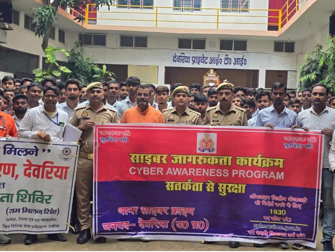 देवरिया पुलिस की साइबर थाना व कोतवाली की संयुक्त टीम ने देवरिया प्राइवेट आईटीआई में छात्रों और स्टाफ को साइबर अपराधों के प्रति जागरूक किया। पुलिस अधीक्षक संजीव सुमन के निर्देशन में चलाए गए इस अभियान में टीम ने ऑनलाइन ठगी, फिशिंग, हैकिंग, पहचान चोरी, साइबर बुलिंग और फर्जी कॉल जैसे अपराधों से बचाव के उपाय बताए।