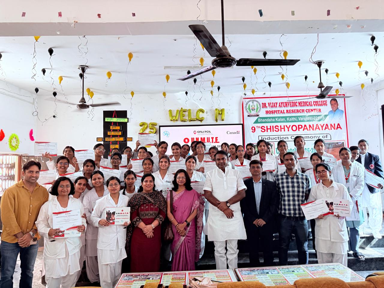 वाराणसी/गाजीपुर (जयदेश)। डॉ. विजय आयुर्वेदिक मेडिकल कॉलेज अस्पताल एवं अनुसंधान केन्द्र, भंदहा कला, कैथी में छात्राओं हेतु आयोजित यू.एन.एम.यू.टी.ई. (मीडिया, समझ, प्रौद्योगिकी एवं अभिव्यक्ति के माध्यम से कथाओं का उत्थान) व्याख्यानमाला का समापन समारोह सम्पन्न हुआ। कार्यक्रम का शुभारम्भ कृष्ण सुदामा ग्रुप ऑफ इंस्टीट्यूशंस गाज़ीपुर, वाराणसी के अध्यक्ष डॉ. विजय यादव द्वारा भगवान धन्वन्तरी की प्रतिमा पर माल्यार्पण एवं दीप प्रज्वलन के साथ किया गया।