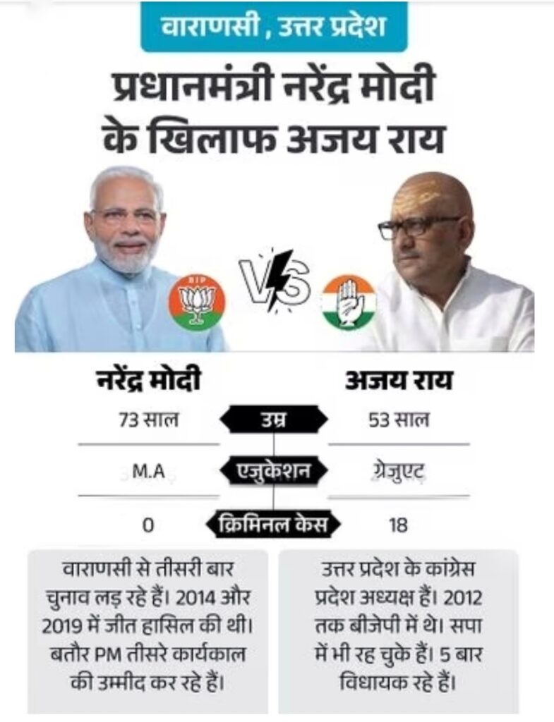 मतदान के अंतिम चरण के दिन वाराणसी में भी 1 जून को वोटिंग होगा। वाराणसी सबसे वीआईपी सीट है। पीएम मोदी पिछले 10 साल से यहां के सांसद हैं। तीसरी बार उनकी नजर बहुत बड़े अंतर से जीत हासिल करने पर है। इस बार यहां से केवल 6 उम्मीदवार ही पीएम मोदी के खिलाफ चुनाव मैदान में उतरे हैं। शुरुआत में 141 उम्मीदवारों ने नामांकन भरा था। एक ने वापस ले लिया। बाकियों में से केवल 7 ही स्क्रूटनी में पास हो सके।