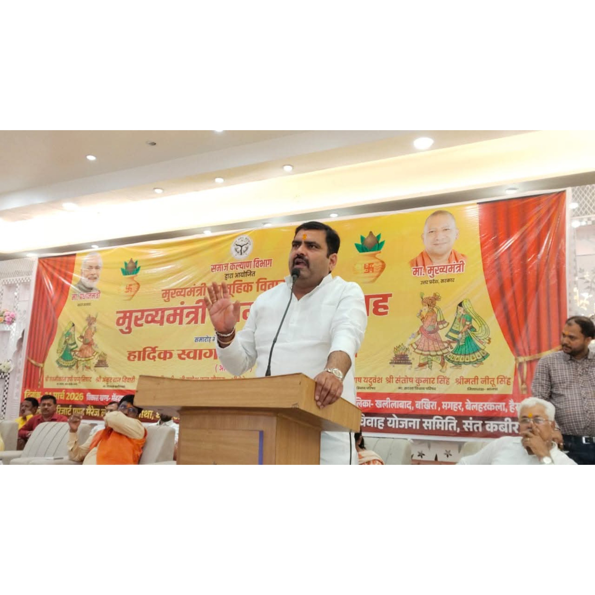 उन्होंने नवजोड़ों को प्रेम, विश्वास और आपसी सम्मान के साथ जीवन के नए सफर की शुरुआत करने की शुभकामनाएँ दीं। कार्यक्रम में भाजपा जिला अध्यक्ष नीतू सिंह, धनघटा विधायक गणेश चंद्र चौहान, मुख्य विकास अधिकारी संत कबीर नगर सहित अनेक गणमान्य लोग उपस्थित रहे।