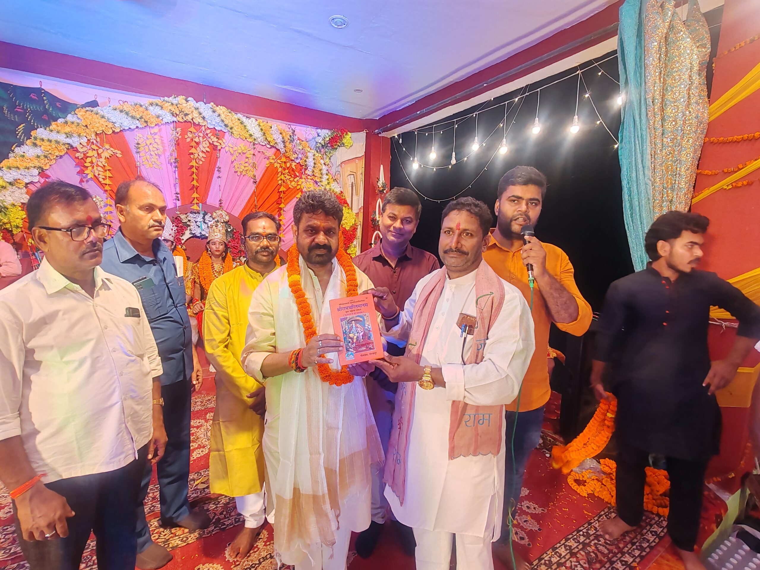 समिति अध्यक्ष संतोष मिश्र ने मंत्री जी और जटाशंकर मिश्र का अंगवस्त्र व रामचरितमानस भेंट कर स्वागत किया।