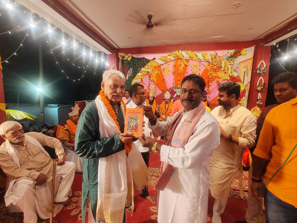 समिति अध्यक्ष संतोष मिश्र ने मंत्री जी और जटाशंकर मिश्र का अंगवस्त्र व रामचरितमानस भेंट कर स्वागत किया।