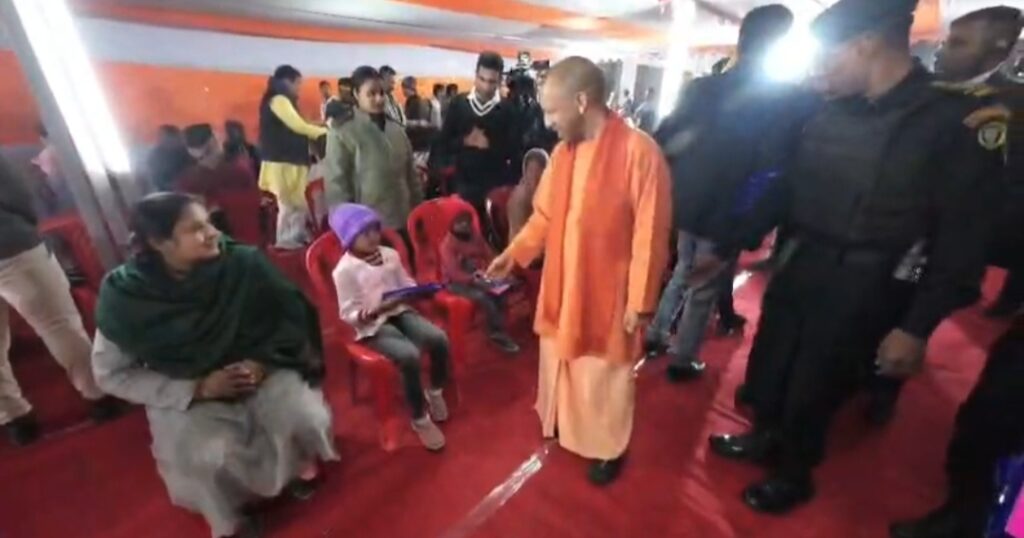 सीएम योगी ने शीतलहर में ठिठुरते गरीबों में बांटे कंबल-भोजन, बच्चों को दी चॉकलेट
