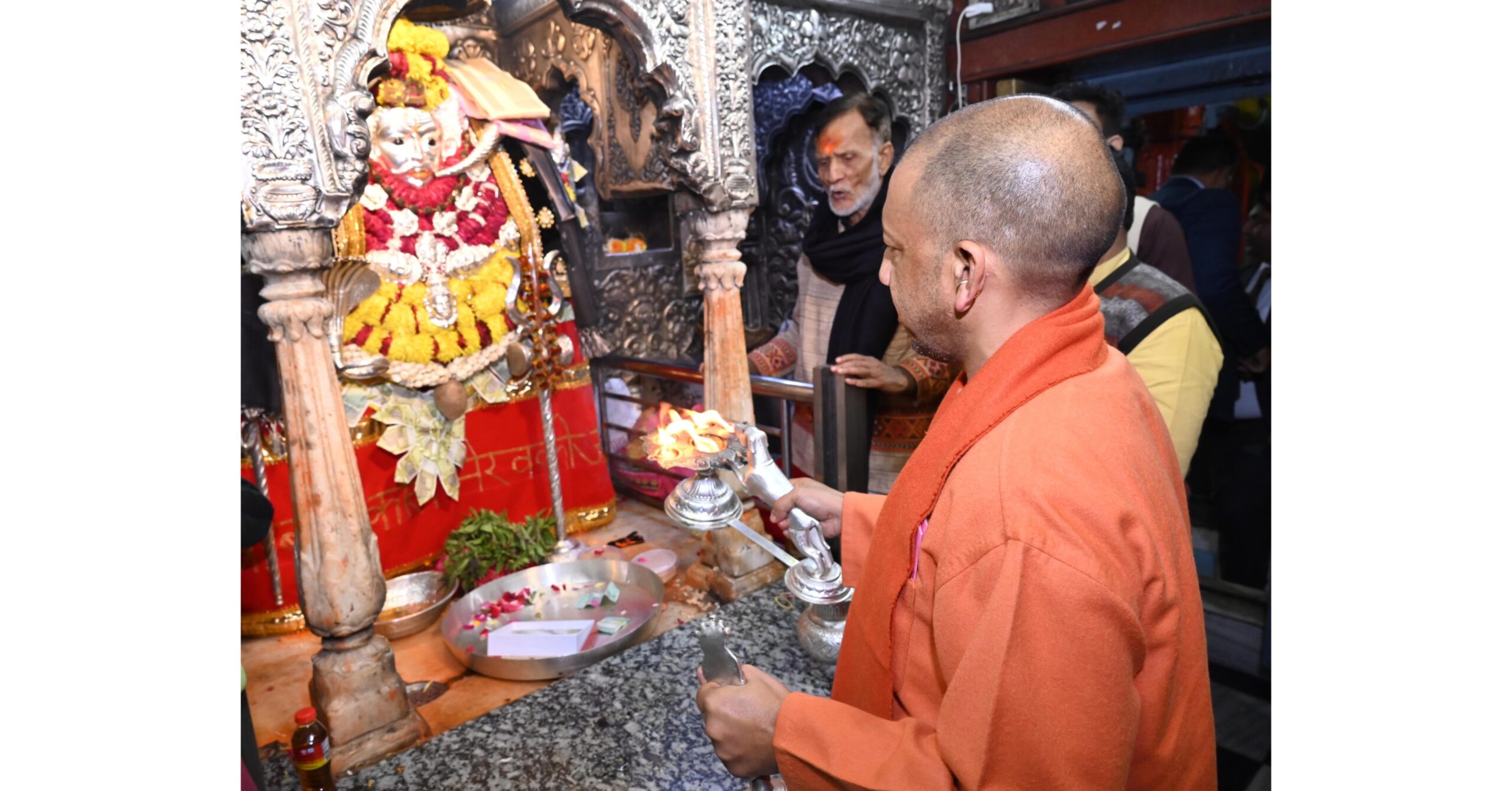 इस दौरान मुख्यमंत्री के साथ प्रदेश के स्टाम्प एवं न्यायालय पंजीयन शुल्क राज्य मंत्री (स्वतंत्र प्रभार) रविन्द्र जायसवाल, आयुष एवं खाद्य सुरक्षा राज्य मंत्री (स्वतंत्र प्रभार) डॉ दयाशंकर मिश्र ‘दयालु’, पूर्व मंत्री एवं विधायक डॉ नीलकंठ तिवारी, एमएलसी हंसराज विश्वकर्मा, एमएलसी धर्मेन्द्र राय, विधायक सौरभ श्रीवास्तव आदि लोग प्रमुख रूप से उपस्थित रहे। इससे पूर्व मुख्यमंत्री योगी आदित्यनाथ ने बाबा कालभैरव एवं श्री काशी विश्वनाथ मंदिर में विधिवत् दर्शन-पूजन किया।