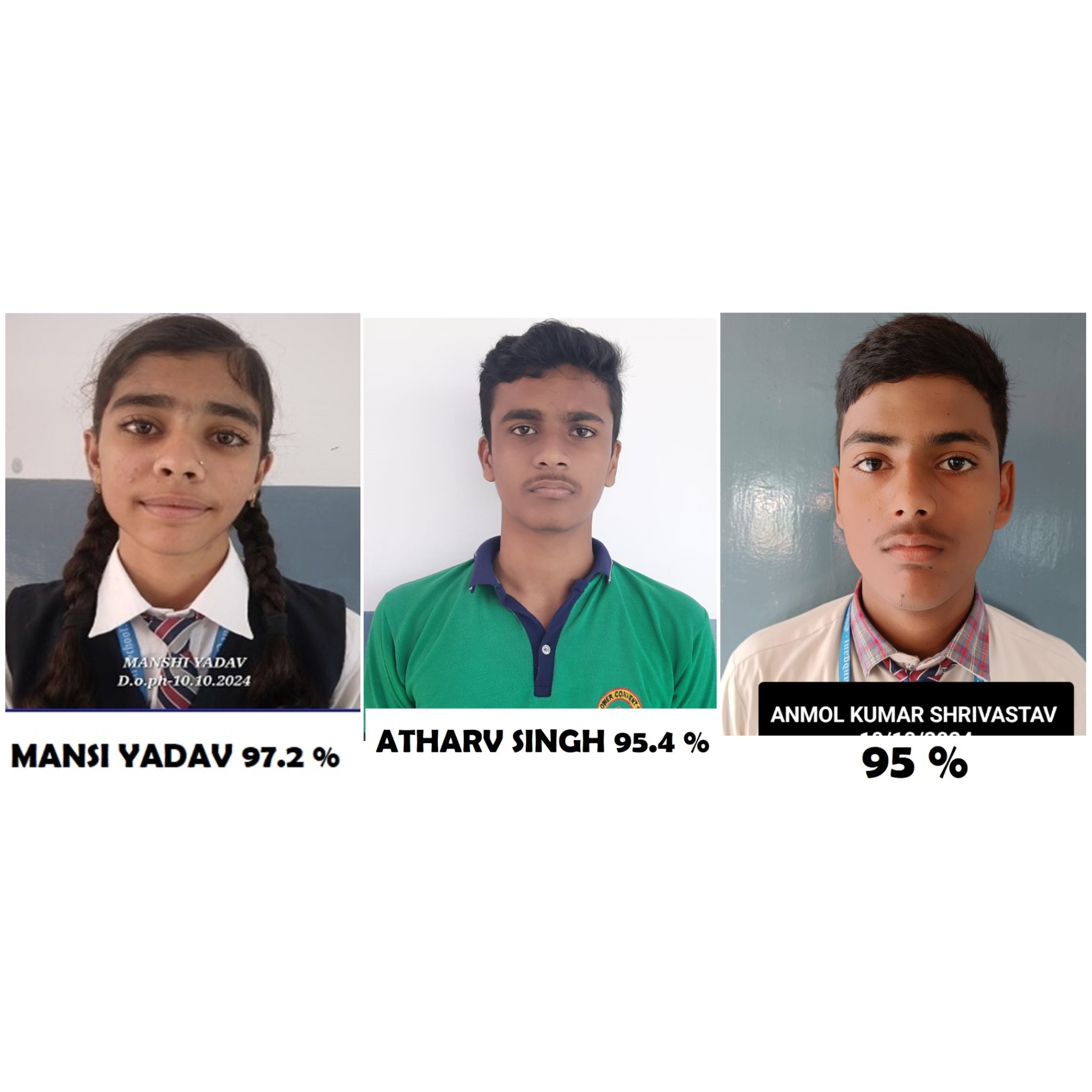 घोषित हाईस्कूल परीक्षाफल में मानसी यादव ने 97.2% अंकों के साथ विद्यालय टॉप किया तथा अथर्व सिंह 95.4% के साथ दूसरा स्थान एवं अनमोल श्रीवास्तव 95% अंकों के साथ  तीसरा स्थान प्राप्त किया है। विद्यालय में इन बच्चों ने सर्वाधिक अंक प्राप्त करके अपने पूरे विद्यालय परिवार तथा माता-पिता का नाम रौशन किया है। विद्यालय की प्रबंधक पुष्पा यादव एवं प्रधानाचार्य संतोष यादव ने इन बच्चों का मुंह मीठा कराते हुए इनको बहुत-बहुत बधाई और स्नेहाशीष देकर इनका उत्साहवर्धन करते हुए उनके उज्ज्वल भविष्य की कामना की है।