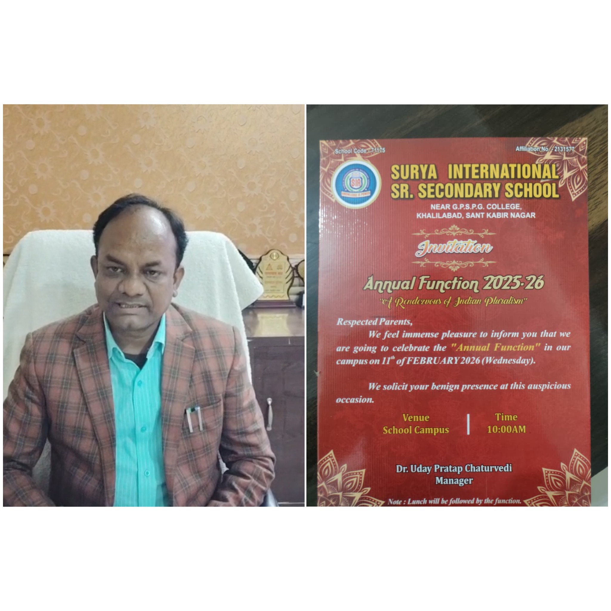 संतकबीरनगर। जनपद के प्रतिष्ठित शैक्षणिक संस्थान सूर्या सीनियर सेकेंडरी स्कूल में आगामी कार्यक्रमों को लेकर छात्रों, शिक्षकों और अभिभावकों में खासा उत्साह देखने को मिल रहा है। विद्यालय में 10 फरवरी को कक्षा 10वीं के विद्यार्थियों के लिए ‘गुड लक कार्यक्रम’ तथा 11 फरवरी को भव्य ‘वार्षिकोत्सव समारोह’ का आयोजन किया जाएगा।