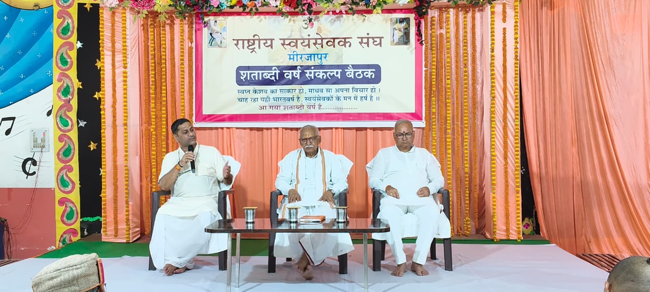 मीरजापुर। शुक्रवार को राष्ट्रीय स्वयंसेवक संघ विंध्याचल विभाग ने अपने शताब्दी वर्ष के उपलक्ष्य में बड़ी बसही स्थित शेमफोर्ड पब्लिक स्कूल में एक विशाल कार्यक्रम का आयोजन किया। इस अवसर पर हजारों स्वयंसेवक और नागरिक एकत्र हुए और विश्व शांति तथा समृद्धि के लिए समरस और संगठित हिंदू समाज के निर्माण का संकल्प लिया। कार्यक्रम में सामाजिक समरसता, कुटुंब प्रबोधन, पर्यावरण संरक्षण, स्व का बोध और नागरिक कर्तव्यों जैसे पांच प्रमुख विषयों पर विशेष बल दिया गया।कार्यक्रम की शुरुआत सह जिला कार्यवाह द्वारा प्रस्तावना प्रस्तुत करने से हुई। इसके बाद दीप प्रज्ज्वलन कर औपचारिक शुभारंभ किया गया। मुख्य वक्ता क्षेत्र प्रचारक अनिल जी ने स्वयंसेवकों को संबोधित करते हुए कहा कि हिंदू समाज की एकता ही भारत को विश्व गुरु बनाने की दिशा में सबसे महत्वपूर्ण कदम है। उन्होंने पर्यावरण संरक्षण के लिए कपड़े के थैले उपयोग करने और प्लास्टिक मुक्त समाज की स्थापना की आवश्यकता पर जोर दिया। साथ ही स्वयंसेवकों से आह्वान किया कि वे गांव-गांव और गली-गली पहुंचकर संघ साहित्य का वितरण करें और हिंदू सम्मेलनों के जरिए राष्ट्रीय एकता का संदेश फैलाएं।उन्होंने यह भी कहा कि प्रत्येक गांव और नगर में शाखाओं को स्थापित और सुदृढ़ करना समय की मांग है। प्रतिदिन प्रातः चार बजे उठकर स्वयंसेवकों को शाखा में बुलाने और राष्ट्र के प्रति जागरूक करने पर बल दिया गया। समाज को तोड़ने वाली ताकतों से सतर्क रहने की चेतावनी देते हुए उन्होंने कहा कि जातिगत विभाजन सनातन की एकता में सबसे बड़ी बाधा है। यदि इन विकृतियों का समाधान नहीं किया गया तो अखंड समाज का निर्माण कठिन होगा। सनातन का उत्थान ही भारत के उत्थान की आधारशिला है और इसी के माध्यम से राष्ट्र विश्व गुरु की दिशा में आगे बढ़ सकेगा।कार्यक्रम में क्षेत्र प्रचारक अनिल जी, प्रांत कार्यवाह अंगराज सिंह, जिला संघ चालक शरद चंद्र, विभाग संघचालक तिलकधारी, सह प्रांत प्रचारक सुनील, सह प्रांत कार्यवाह डॉ. राजबिहारी लाल, प्रांत बौद्धिक शिक्षण प्रमुख डॉ. कुलदीप, जिला कार्यवाह रविंद्र, सह जिला कार्यवाह नीरज, सह जिला संघ चालक कृष्ण कुमार, उप विभाग संघ चालक धर्मराज और विभाग प्रचारक कौशल किशोर सहित अनेक पदाधिकारी एवं कार्यकर्ता मौजूद रहे।