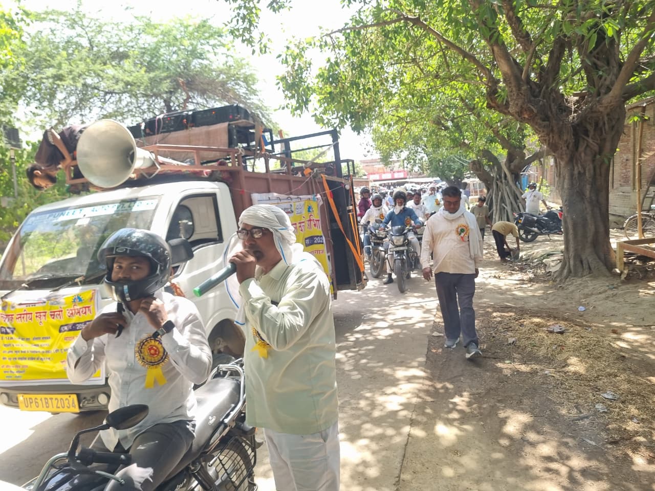 सादात (गाजीपुर) जयदेश। शिक्षा क्षेत्र सादात में स्कूल चलो अभियान के तहत शनिवार को ब्लाक स्तरीय जागरूकता रैली बैंड-बाजा और डीजे के साथ निकाली गई। रैली में सभी 13 न्याय पंचायतों के शिक्षक/शिक्षिका बाइक और स्कूटी पर सवार होकर शामिल हुए। खंड शिक्षा अधिकारी सीताराम यादव ने बीआरसी से हरी झंडी दिखाकर रैली को रवाना किया। बीईओ सीताराम यादव के नेतृत्व में रैली बीआरसी मुख्यालय से शुरू होकर रैली रघुवंश चौराहा से कटयां, बौरवां, माहपुर, भीमापार, मई, मलौरा, मिर्जापुर, प्यारेपुर, बहरियाबाद, रायपुर, मजुई सहित अनेक गांवों से होते हुए पुनः बीआरसी पर पहुंचकर संपन्न हुई।