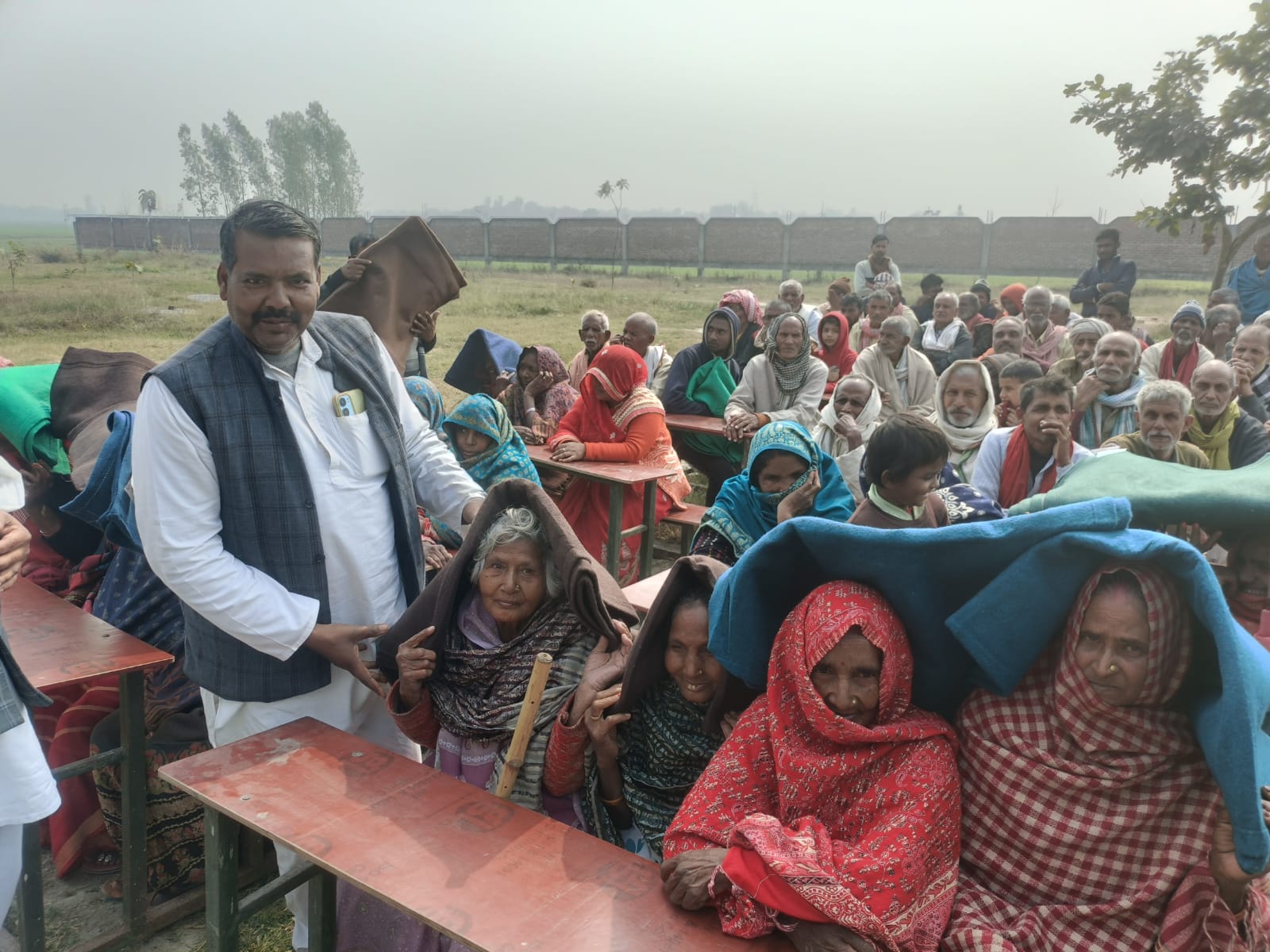 गाजीपुर (जयदेश)। ग्राम सभा सरायमुबारक स्वर्गीय राम आशीष आदर्श महाविद्यालय में कंबल वितरण का कार्यक्रम स्वर्गीय रामाशीष यादव मास्टर साहब के यादगार में उनके बेटे इंजीनियर श्रीराम यादव, कमलेश यादव , जयराम यादव , संतोष यादव मास्टर के नेतृत्व में गांव के धर्मपुरा महममूदपुर तरौटी ब्रह्माणपुर वह अन्य गांव के पात्र व्यक्तियों को कंबल वितरण किया गया।