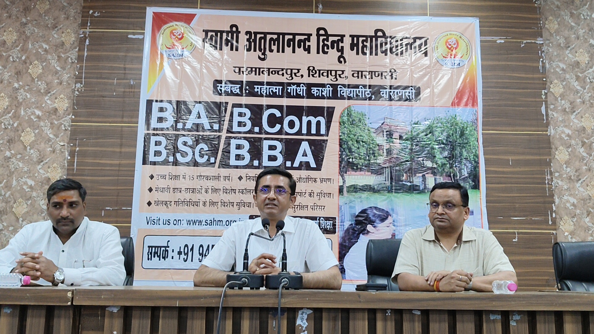 वाराणसी। स्वामी अतुलानन्द हिन्दू महाविद्यालय, परमानन्दपुर, शिवपुर, वाराणसी में शैक्षणिक सत्र 2025-26 से दो नए स्नातक पाठ्यक्रमों—बैचलर ऑफ आर्ट्स (बी.ए.) और बैचलर ऑफ बिजनेस एडमिनिस्ट्रेशन (बी.बी.ए.)—की शुरुआत हो रही है। इस संदर्भ में एक पत्रकार वार्ता का आयोजन वाराणसी कमिश्नरी सभागार में किया गया, जहां महाविद्यालय के प्रबंधक राहुल सिंह ने विस्तार से जानकारी दी।उन्होंने बताया कि महाविद्यालय, जो कि वर्ष 2010 से विज्ञान (बी.एससी) और वाणिज्य (बी.कॉम) संकायों में शिक्षण कर रहा है, अब कला और व्यवसाय प्रबंधन की दिशा में भी कदम बढ़ा रहा है।