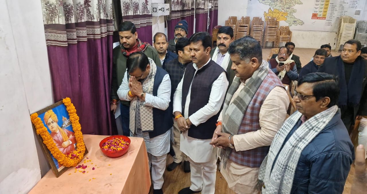 गोरखपुर। स्वामी विवेकानंद की जन्म जयंती के अवसर पर आज बेनीगंज स्थित भाजपा कार्यालय महानगर गोरखपुर में स्वामी विवेकानंद जी के चित्र पर पुष्प चढ़ाकर उनकी स्मृतियों को नमन किया गया। कार्यक्रम में मुख्य अतिथि प्रदेश उपाध्यक्ष व विधान परिषद सदस्य डॉ धर्मेंद्र सिंह व विधायक विपिन सिंह व महानगर संयोजक राजेश गुप्ता उपस्थित रहे।