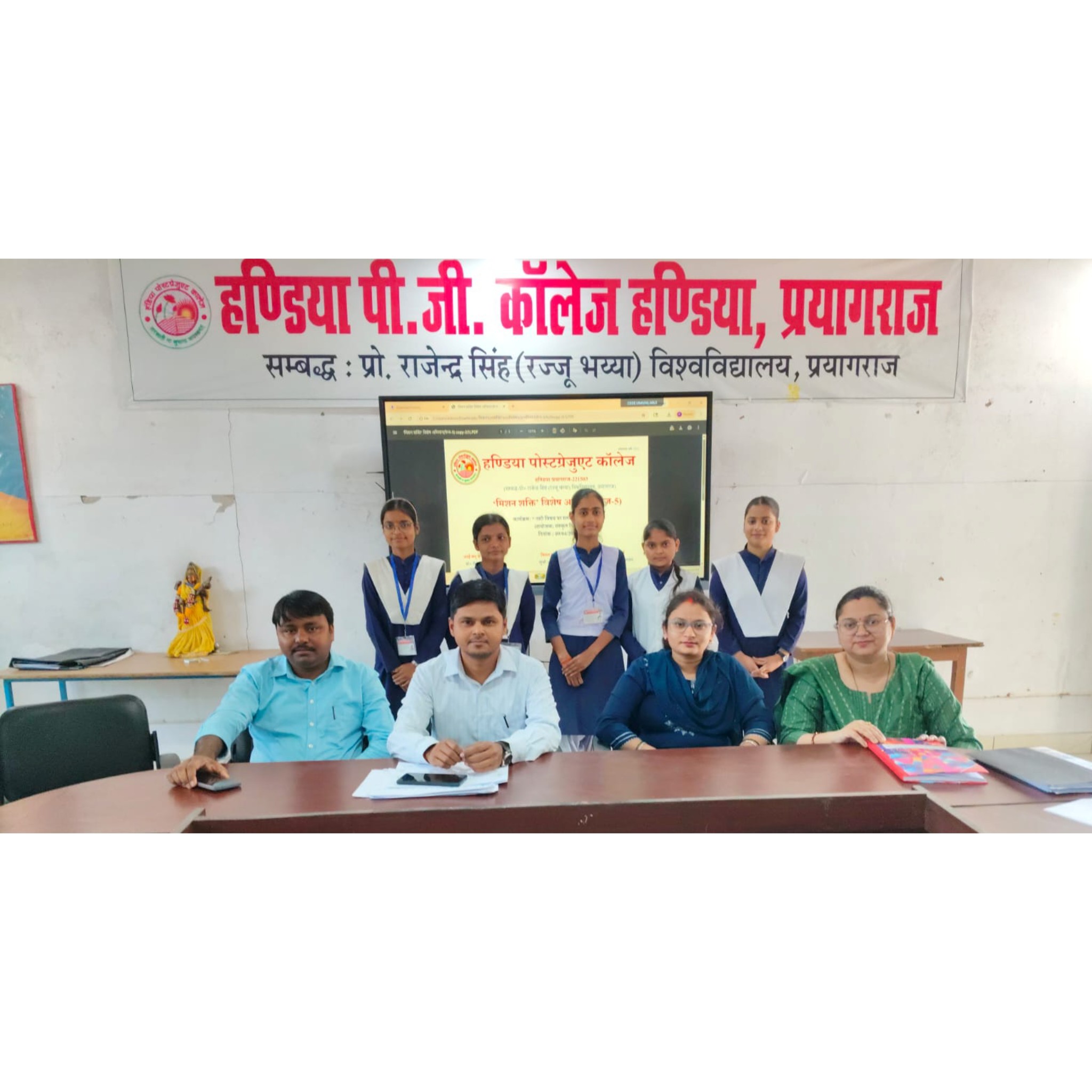 हंडिया (प्रयागराज) जयदेश। मिशन शक्ति फेज-5 अभियान के अंतर्गत हंडिया पीजी कॉलेज, हंडिया, प्रयागराज में महिला प्रकोष्ठ के तत्वावधान में गुरुवार को संस्कृत विभाग के डॉ॰ अनुराग मालवीय तथा डॉ. सत्येंद्र सिंह के द्वारा “वूमेन एंपावरमेंट: स्लोगन कंपटीशन” कार्यक्रम का सफल आयोजन किया गया। कार्यक्रम का उद्देश्य छात्र-छात्राओं में महिलाओं के अधिकार, समानता और आत्मनिर्भरता के प्रति जागरूकता बढ़ाना था।