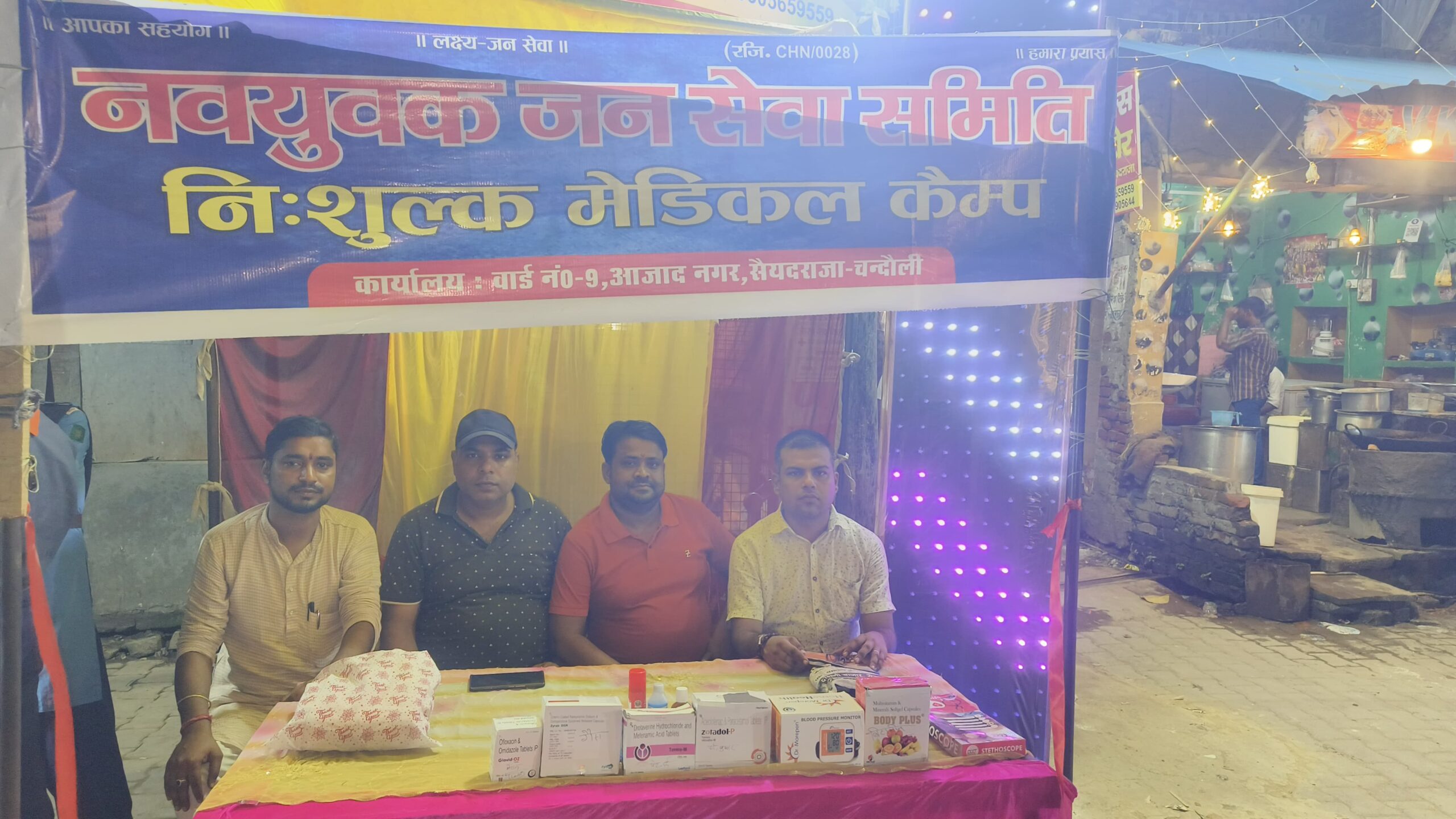 सैयदराजा (चंदौली)। नवयुवक जन सेवा समिति के तत्वाधान में नवरात्र के पावन पर्व पर लगने वाले तीन दिवसीय मेले में निःशुल्क मेडिकल कैंप की व्यवस्था की गई। समिति के अध्यक्ष अंकित जायसवाल ने बताया कि लगातार 4 वर्षों से यह व्यवस्था समिति के माध्यम से की जा रही है जिसमें सैयदराजा मेडिकल एसोसिएशन टीम का बहुत बड़ा सहयोग मिल रहा है।