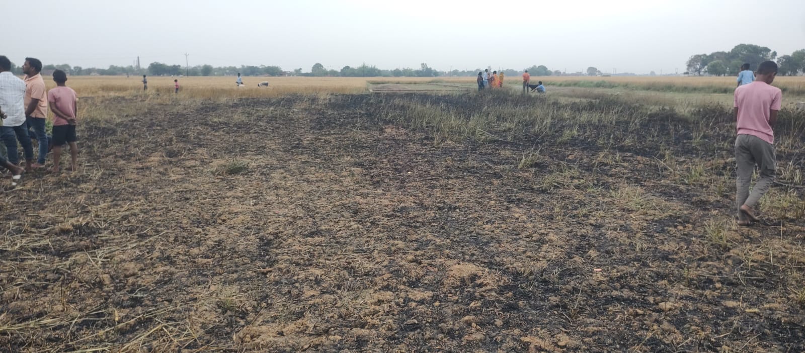 हाईटेंशन लाइन में स्पार्क से गेहूं की फसल राख, किसान को भारी नुकसान