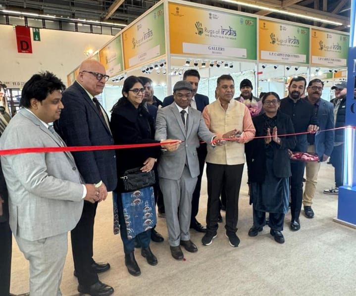 भदोही।जर्मनी के फ्रैंकफर्ट में शुरू हुए विश्व के प्रतिष्ठित होम टेक्सटाइल मेले हेमटेक्सटिल-2026 में भदोही के कालीनों ने अंतरराष्ट्रीय मंच पर अपनी पहचान बनाई है। यह मेला 13 से 16 जनवरी तक आयोजित किया जा रहा है, जिसमें भदोही सहित देश के 50 कालीन निर्यातक भाग ले रहे हैं।कालीन निर्यात संवर्धन परिषद के नेतृत्व में भारतीय कालीनों को हॉल नंबर 11.1 में प्रदर्शित किया गया है, जहां हस्तनिर्मित कालीनों की बेहतरीन डिज़ाइन, रंग और कारीगरी दुनिया के खरीदारों को आकर्षित कर रही है।