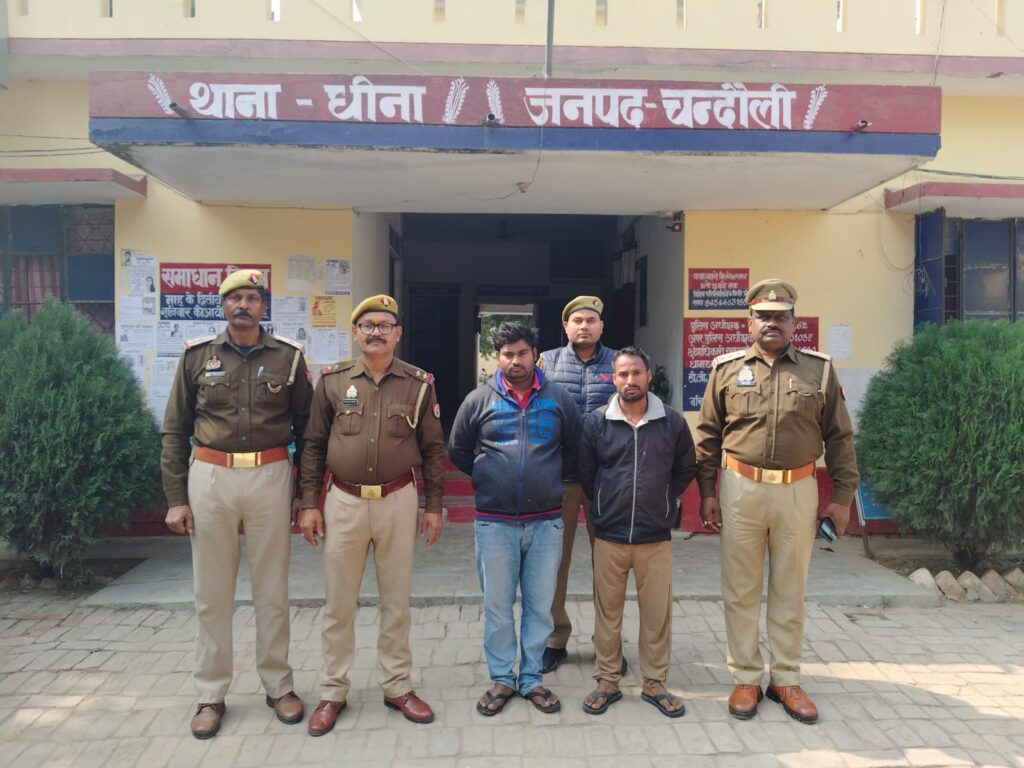 पुलिस अधीक्षक डाॅ. अनिल कुमार ने मातहतों को अपराधियों व इनामिया बदमाशों को गिरफ्तार करने का निर्देश दिया है। इसके तहत धीना थाना प्रभारी निरीक्षक रमेश यादव ने पुलिस टीम बनाकर अभियान चलाया है। बुधवार की देर शाम मुखबिर से सूचना मिली कि 10 हजार के दो इनामिया गैंगस्टर, चन्दौली के कटरिया देशी शराब के ठेके पर आए है। पुलिस ने मामले का तत्काल संज्ञान लेते हुए दोनों अपराधियों को गिरफ्तार कर लिया।