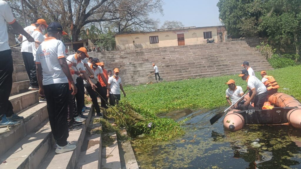 11 एनडीआरएफ वाराणसी द्वारा पुष्कर तालाब में चलाया गया वृहद स्वच्छता अभियान