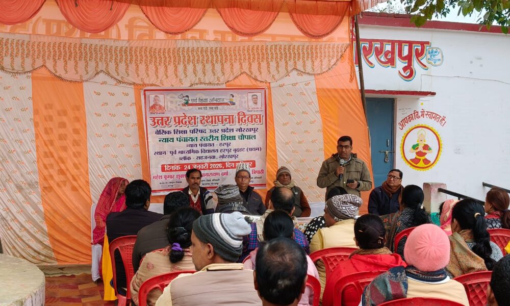 गोरखपुर। जनपद के सहजनवा विकासखंड अंतर्गत पूर्व माध्यमिक विद्यालय हरपुर बुदहट प्रथम में उत्तर प्रदेश स्थापना दिवस के अवसर पर न्याय पंचायत स्तरीय शिक्षा चौपाल कार्यक्रम...