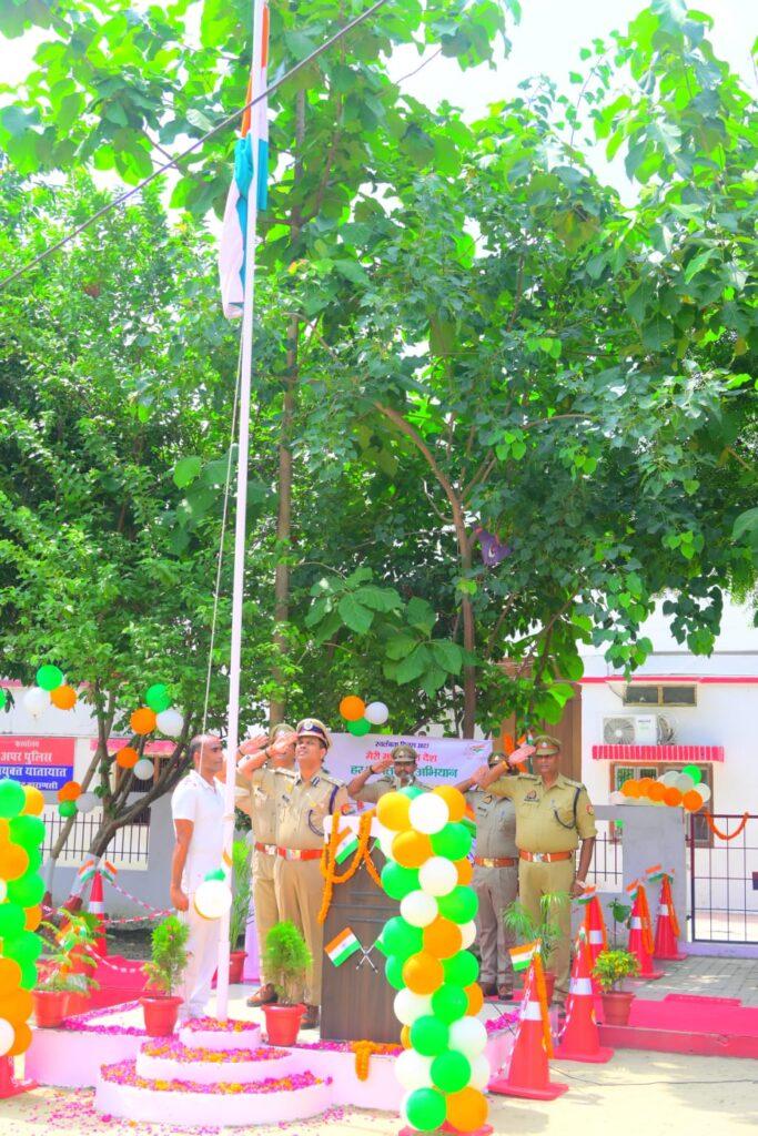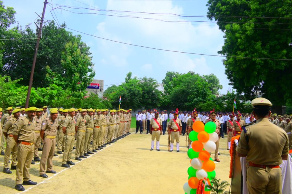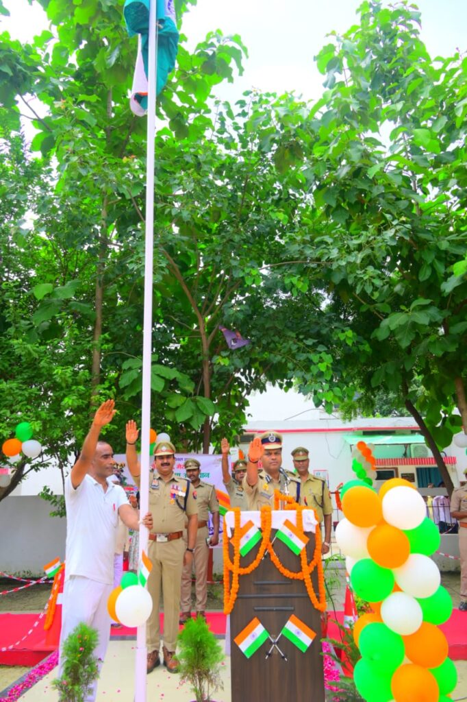 77 वें स्ववंत्रता दिवस के पर यातायात पुलिस लाइन में किया गया ध्वजारोहण